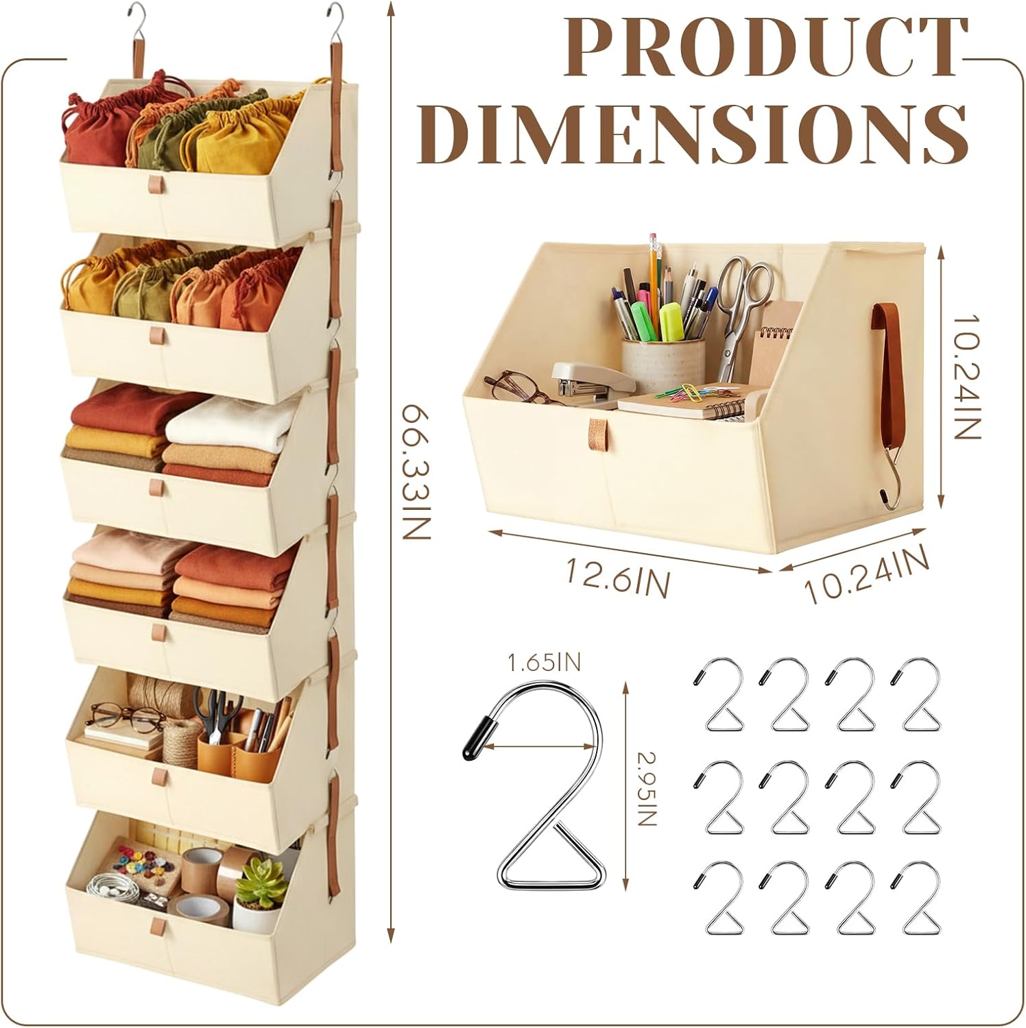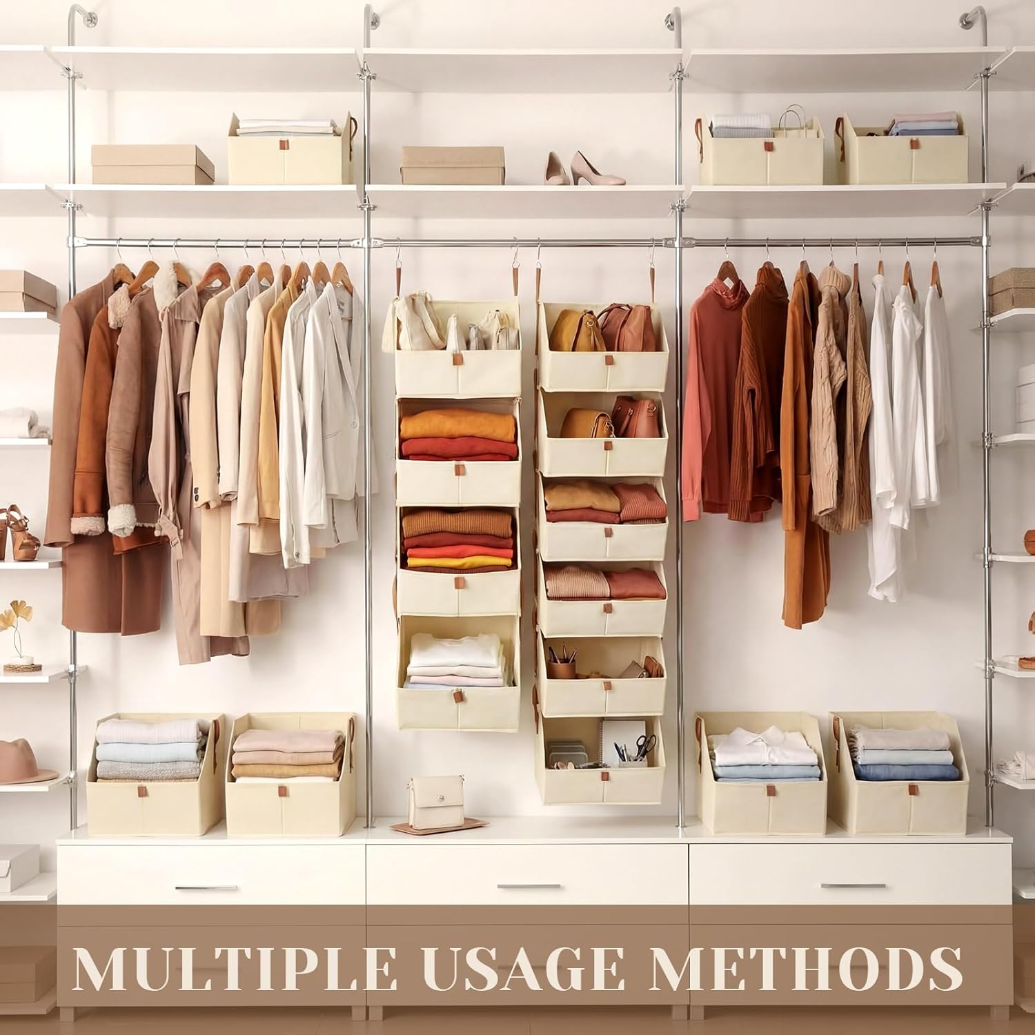 Features: This closet organizer uses a trapezoidal shelf design. The shape of the open shelves assists in keeping items within the bins and limits slipping. This closet hanging organizer uses side zippers along with secure straps. These features help keep the shelves stable during use. The design assists in preventing shifting or tilting when the shelves are holding items. Specifications: Material: nonwovens Color: beige, orange Size: about 12.6 x 9.45 x 9.45 inches/ 32 x 24 x 24 cm Package includes: 6 x Clothes hanging shelves Notes: Manual measurement, please allow slight errors on size. The color may exist a slight difference due to different screen displays
