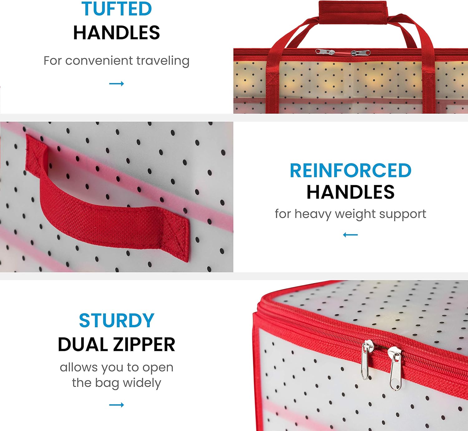 ZOBER Plastic Christmas Ornament Storage Box Large with 2-Sided Dual-Zipper Closure - Keeps 128 Holiday Ornaments, Xmas Decorations Accessories, 3" Compartments - Sturdy Flexible Plastic