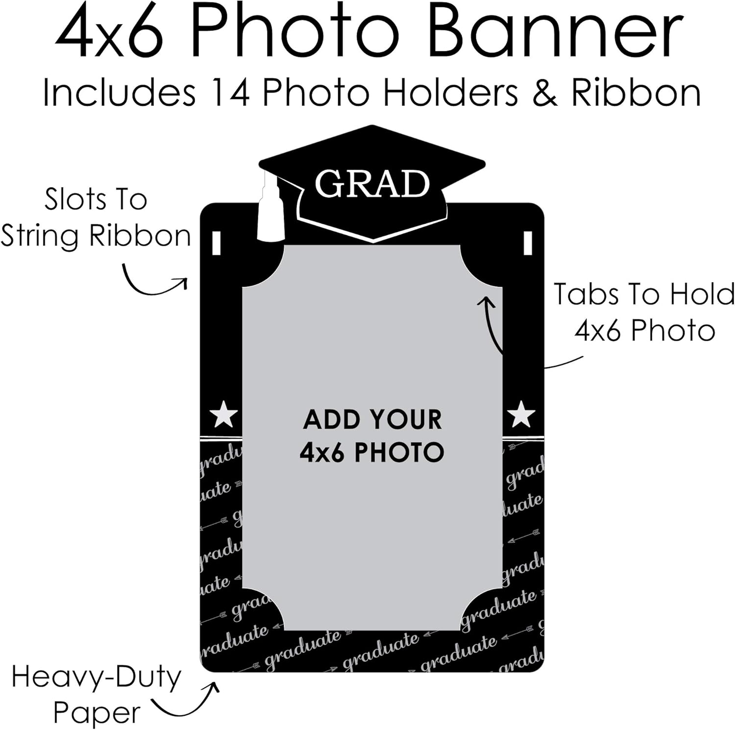 Shine the spotlight on your guest of honor with the Graduation Cheers Photo Display Bundle. These picture display sets are perfect for going down memory lane and highlighting the milestones of your loved one. The Photo Banner is ideal for vertical photos sized 4 inches x 6 inches and can be hung using the provided ribbon. The Picturific Display is best used with portrait photos sized 8 inches x 10 inches and can be placed on the wall using the included non-marking poster wall mounts. Each set is professionally printed on heavy-duty cardstock paper and comes with 14 photo holders. To assemble, insert your photos into the pre-cut corner tabs of each photo holder. Then, exhibit for all your family and friends to enjoy at your Graduation Party!
