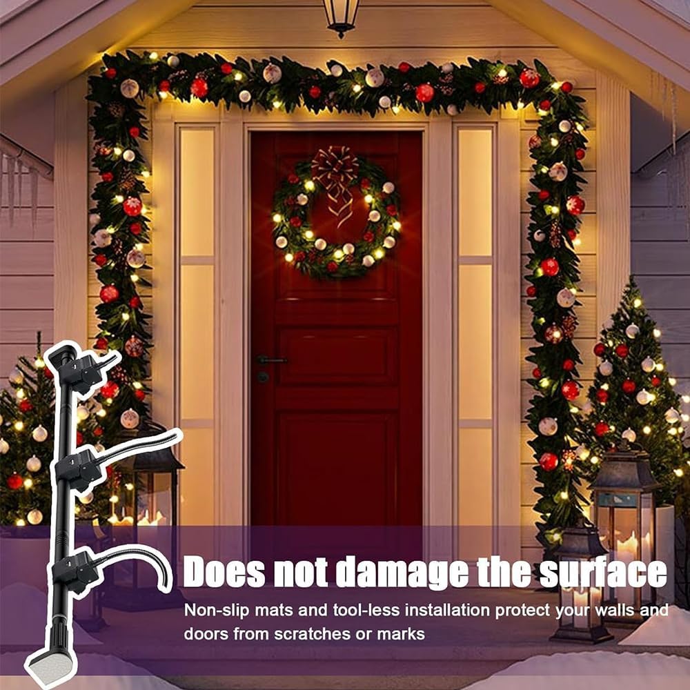 This universally adjustable wreath stand is a perfect companion for holiday decorating, easily satisfying any decorative need. It features multiple width adjustments to accommodate door widths ranging from 80-100cm, 150-170cm, and 180-205cm. It also fits door frames from 30-80 inches, covering most standard front doors and easily accommodating oversized wreaths and densely packed holiday garlands. Installation is incredibly easy, requiring no tools. With its threaded clamps and non-slip pads, it installs in seconds without leaving residue or scratches on the door or wall. Removal is just as easy and seamless, leaving the door in perfect condition. Its versatile design allows for versatile installation, with its flexible hook arm, suitable not only for front doors but also for mantels, porch railings, and more. Whether hanging lights, banners, or wreaths, it's a secure fit for any year-round celebration. Package Includes: 1 Adjustable Front Door Wreath Hanger Available in three sizes: Small: 80-100 cm (32-39 in) Medium: 150-170 cm (59-67 in) Large: 180-205 cm (70.8-80.7 in)