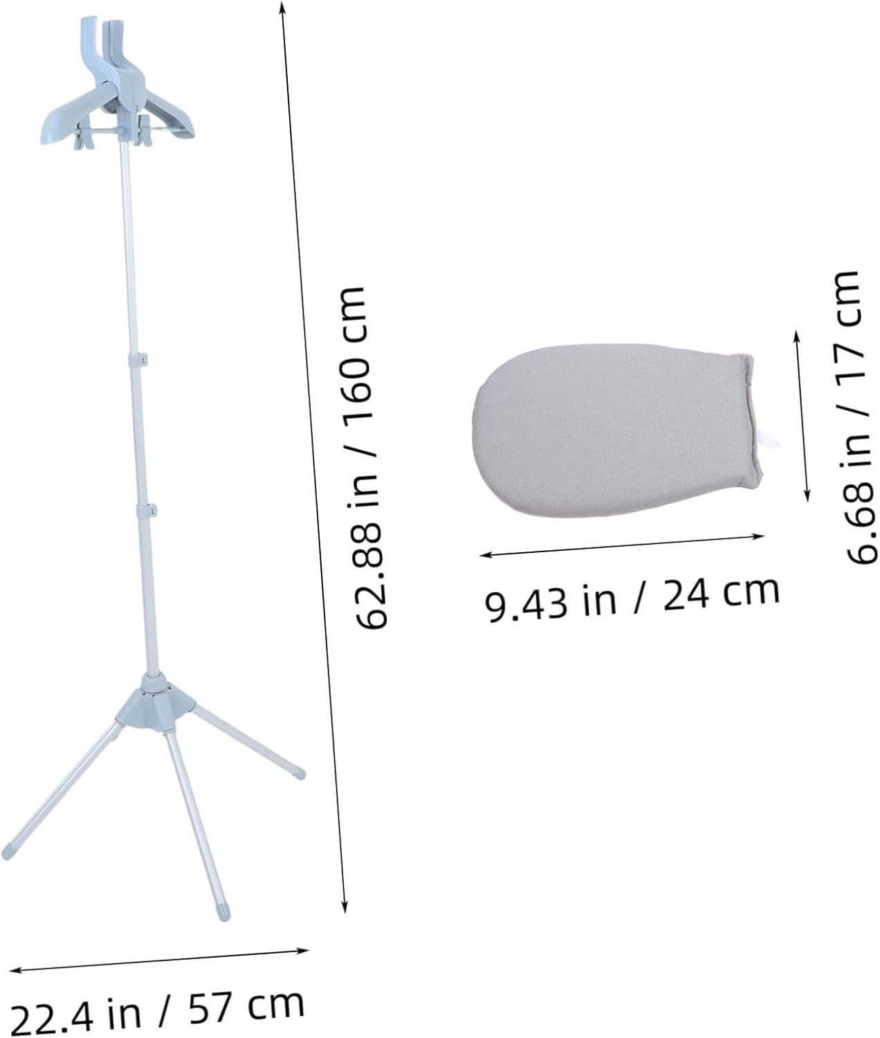 Package List 1 x Bracket 1 x glove Features - and convenient: this rack is built to last and offers long term reliability for all your steaming needs garment hanger -Color:Grey garment stand -Size(glove):24.00X17.00X3.50cm/9.43X6.68X1.38in clothes hangers stand -Versatile : equipped with clips, this hanger can hold pants, jeans, and skirts, allowing you to steam and iron a variety of garments effortlessly steam iron hanger -Complete steaming : the package includes an ironing glove and a hanger, providing everything you need for a seamless and efficient steaming experience garments rack -Material:Aluminium alloy, plastic, cloth home floor-standing ironing rack -Easy installation: the adjustable standing garment hanger is designed for setup, ensuring you can start using it immediately without any hassle garment accessories -Size(rack):160.00X57.00X57.00cm/62.88X22.40X22.40in foldable clothes rack -Height adjustable range: 84-160 cm clothes standing -Spacesaving design: when not in use, the collapsible rack can be folded to save space, making it suitable for small living areas or storage coat rackGoods Information hanger This adjustable telescopic floor-standing hanger is designed to provide a convenient for steaming clothes.steaming rack for clothes Its sleek and modern design fits seamlessly into any home decor.floor hanging ironing rack The hanger is suitable for holding garments while you steam them, ensuring they remain wrinkle-proof and ready to wear