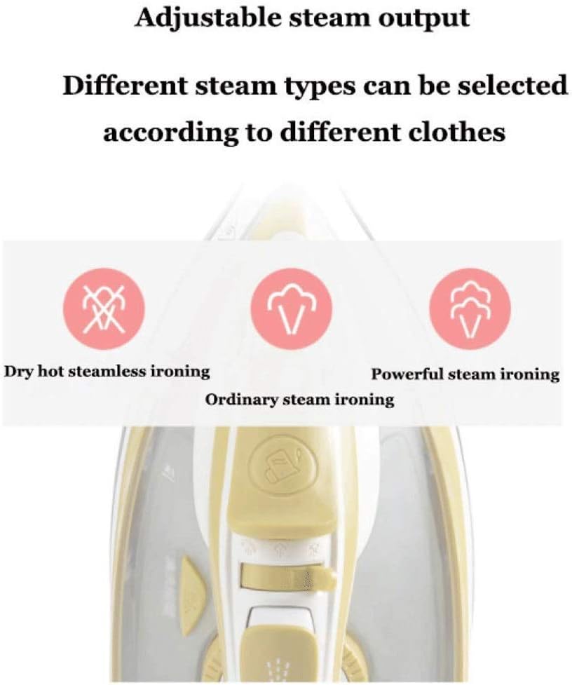 The steaming for all fabrics, providing silky smooth surface drying, spray, steam, strong and vertical steam, suitable for all ironing temperature control, creating the temperature for each garment for high performance anti-drip function When you iron and wet the items Or sewage, the water will not drip onto your clothes.Product descriptionTemperature adjustment gear: five-speed temperature adjustmentSubstrate: ceramic non-stick bottom plateTemperature regulation: mechanical temperature adjustmentWired or : wired, Rated voltage: 110-240 (V)Rated frequency: 50 (HZ)Rated power: 2000 (W)