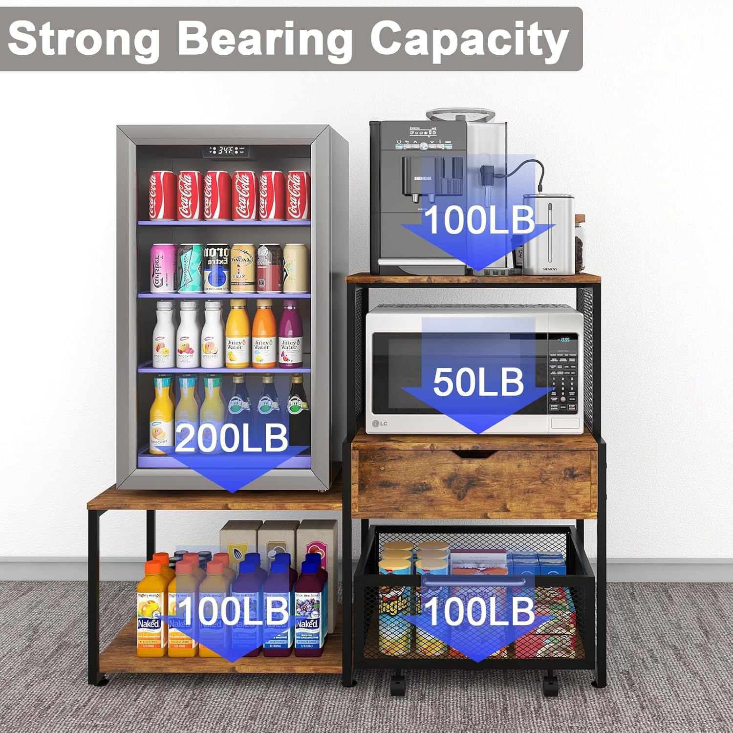 | Additional Features | Built-In Power Outlet, Coffee Machine Use, Fridge Storage, Large Capacity, Pull-out Basket |