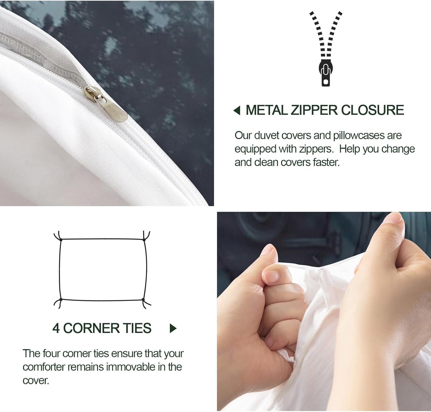 Express Your Personality Through Bold PrintsYour bedroom should reflect you — this printed duvet cover set adds personality and charm with a wide selection of artistic patterns. Whether your style is calm and minimal or vibrant and playful, there's a design to complement any mood or interior.Soft, Breathable, and Year-Round ComfortableCrafted from premium microfiber, this duvet cover feels smooth and skin-friendly. Lightweight yet cozy, it's breathable for summer and insulating for cooler nights — perfect for all-season use.Fade-Resistant Colors that LastPrinted using advanced reactive dyeing, our patterns stay rich and vibrant after repeated washes. No fading, no bleeding — just long-lasting style that holds up over time.Thoughtful Details for Effortless UseHidden zipper closure keeps the look clean and makes insert changes quick.Four interior corner ties prevent the duvet from bunching or shifting at night.Durable stitching ensures long-term reliability and washability.Complete Set, Effortless MakeoverEach set includes:1 Duvet Cover(Twin size measures 68 by 86-inch)2 Matching Pillowcases(Pillow Cases 20 by 26-inch)NOTE: Comforter and Sheet Not IncludedPerfect for bedrooms, dorms, guest rooms, or as a gift — it’s a quick, stylish upgrade for any bed.Comfort Meets CreativityMake a statement with your bedding. Whether decorating your space or gifting someone special, this printed duvet cover set blends comfort, quality, and personality — all in one.