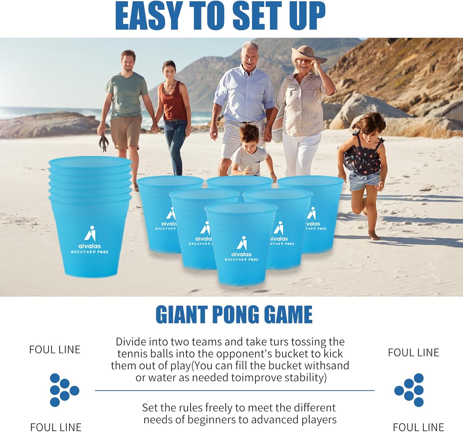 Aivalas Giant Yard Pong Outdoor Games Basketball Game with XL Size Buckets, Outdoor Yard Games for Lawn, Beach, Camping and Family Fun, Toss Throwing Games for Adults and Family