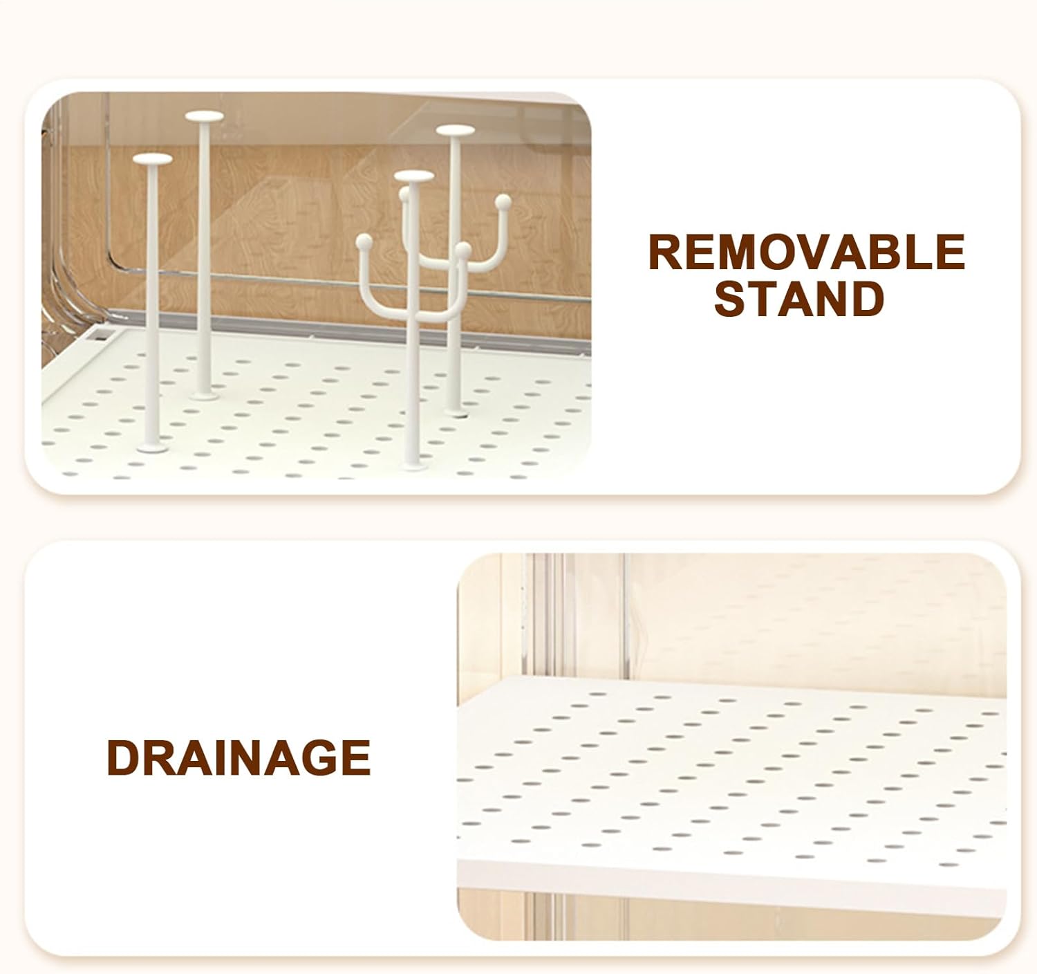 With its large capacity and transparent vertical design, this organizer provides efficient storage for baby bottles while protecting them from dust using a reliable cover. Versatile placement options include kitchens, bathrooms, nurseries, closets, pantries, dorm rooms, bedrooms, tables, or fridges.Specification:Product name: Baby Bottle OrganizerProduct material: PolystyreneProduct size: about 39.5x25x24cm/15.55x9.84x9.45 inchesProduct weight: about 1500gProduct color: WhiteApplication scenario: water cup storage, cosmetics storage, figure storageProduct List:1 Set * Baby Bottle OrganizerNotes: Only the third floor model has drainage bracket, drawer-type drainage tray, and hook.Due to different lighting and screen settings, the product color may be slightly different from the picture.Due to the difference in manual measurement, please allow a 1-3cm difference in size.