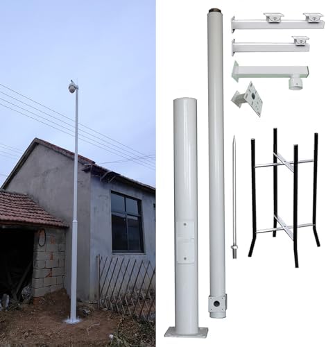 Are you searching for a dependable way to enhance your security camera setup for superior surveillance? Our versatile security camera pole and bracket set is the ideal solution. This comprehensive package features a sturdy surveillance camera post, a protective lightning rod, and a variety of brackets to accommodate single, dual, and pan-tilt-zoom cameras, ensuring compatibility with multiple configurations. The thoughtfully designed street light pole not only adds an appealing aesthetic but also offers a practical height adjustment feature to suit your specific needs. With semi-preset holes for effortless mounting, both DIY enthusiasts and professionals will find assembly and installation to be a breeze. Whether you're working with soil or concrete, our included foundation hardware and expansion screws guarantee stability and reliability. Constructed from durable galvanized steel, this product is engineered to withstand outdoor conditions, ensuring long-lasting performance. Specifications include adjustable pole heights from 2.5m to 6m, with diameters of 7.6cm for the upper pole and 11.4cm for the lower pole. The cross arm lengths accommodate various camera configurations, while the robust ground base cage measures 17cm wide and 50cm high, providing a solid foundation for your security setup. Elevate your surveillance capabilities and enjoy peace of mind with our security camera pole and bracket set, expertly crafted to support your outdoor security requirements efficiently.