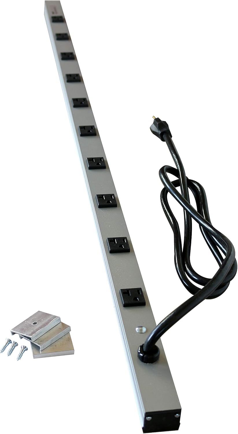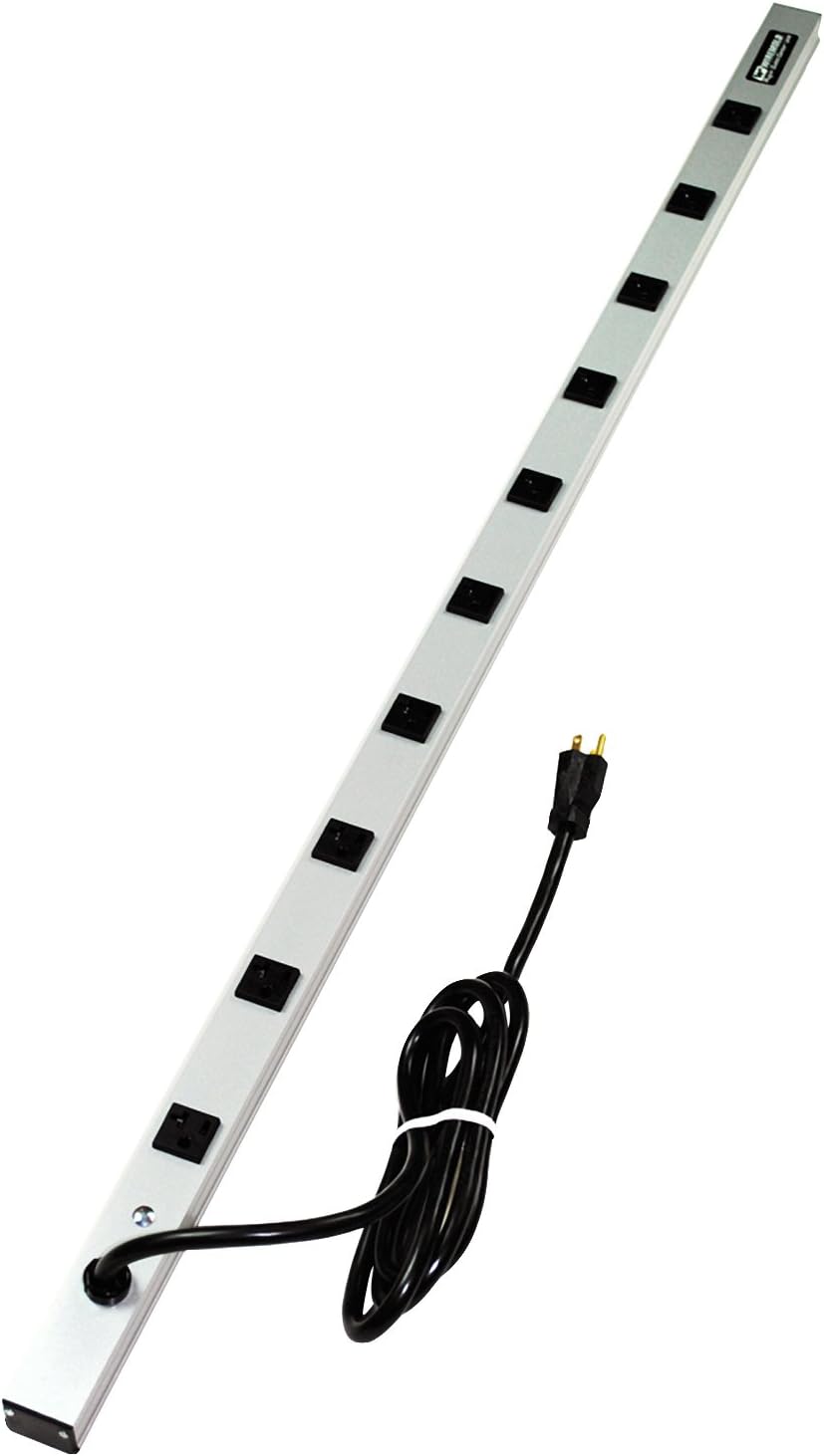 Cabinetmate Plug-in Outlet Center, 48" (1. 2m) long, grey enclosure, 10 outlets, 15 foot (4. 6m) cord, easy to install application.