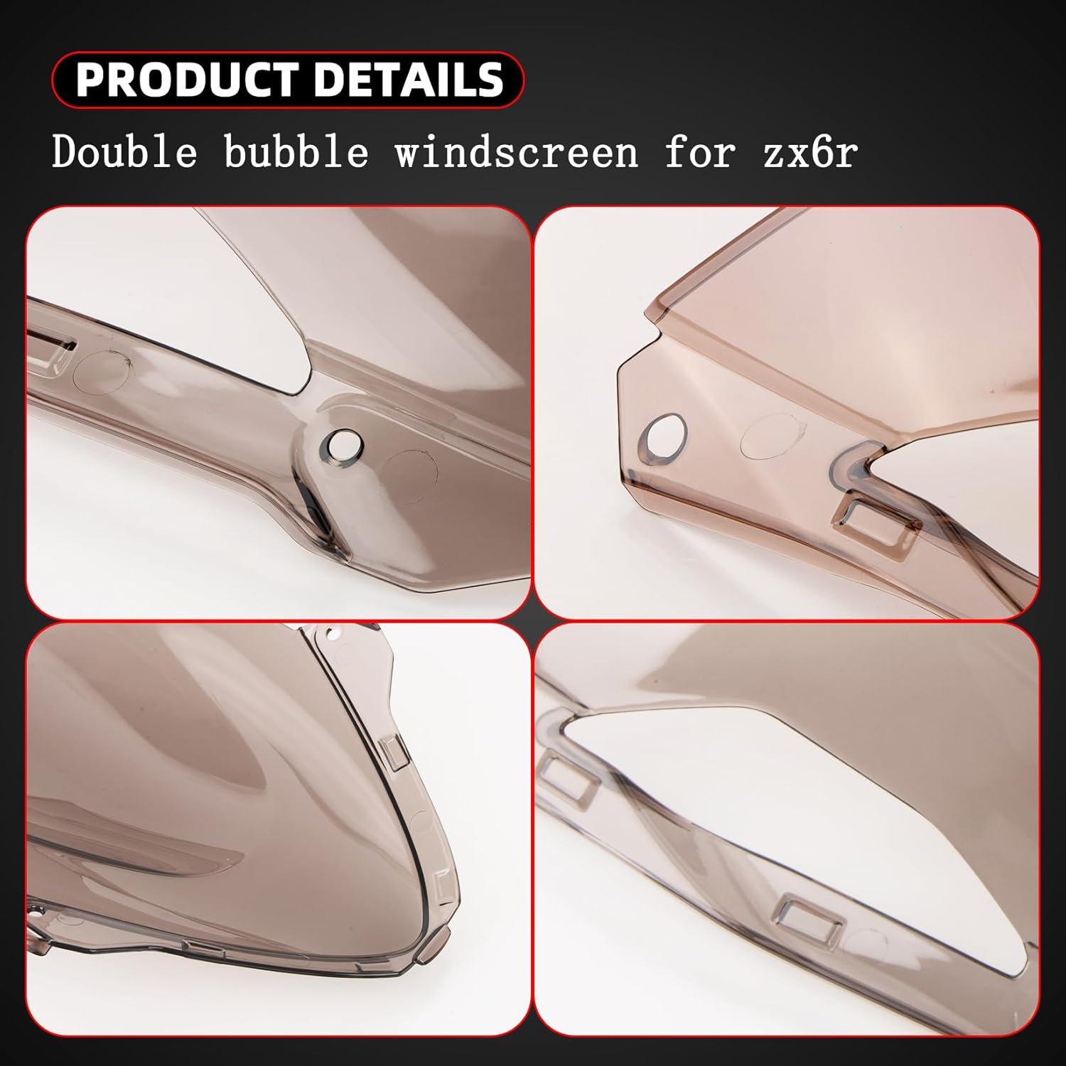 PSLER Double Bubble Windshield for ZX6R 2024-2025 ZX6R Accessories Motorcycle Windscreen(Smoke)