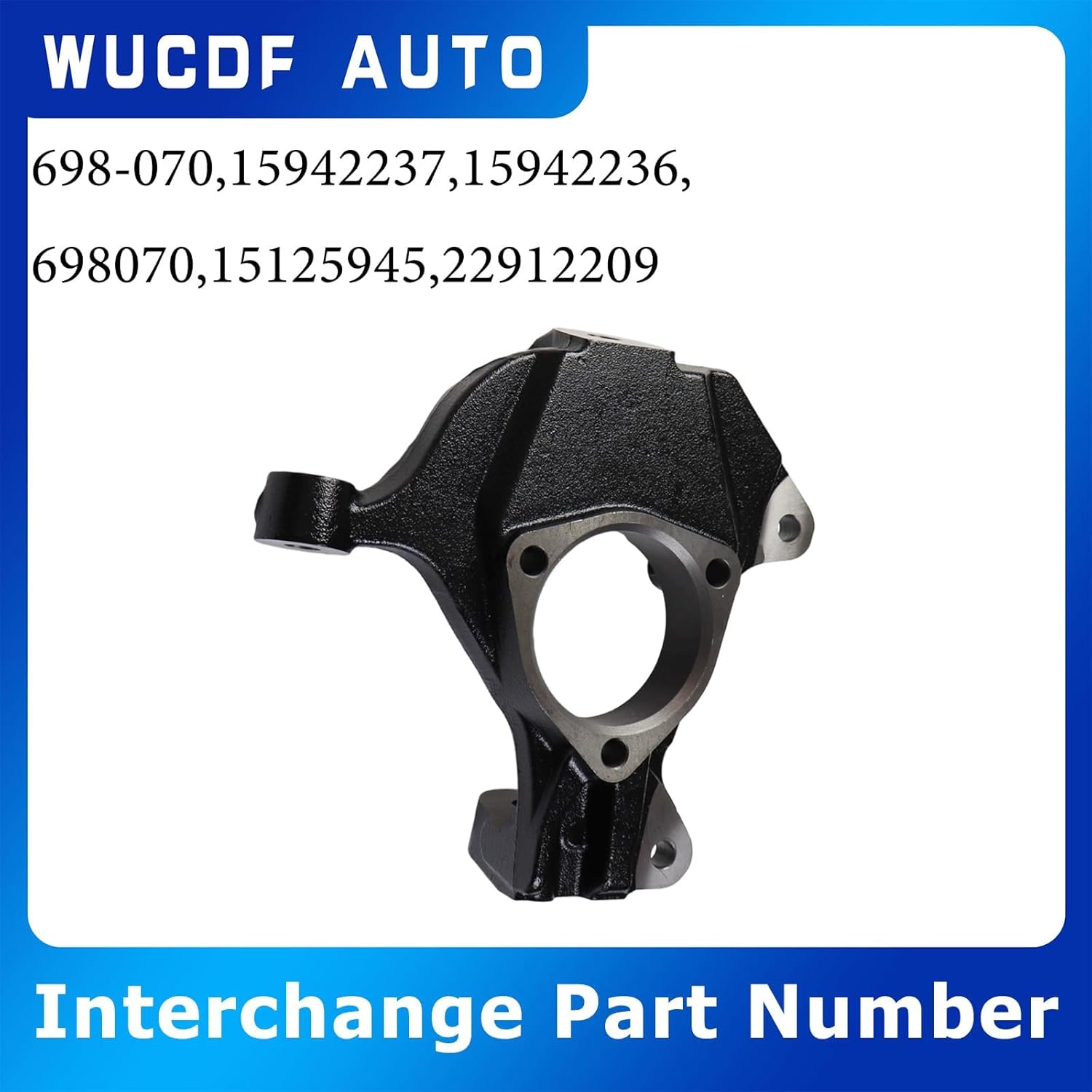 Important Note: While our vehicle compatibility chart is a helpful guide, it may not be exactly accurate. The OE numbers listed in our product details are guaranteed to be correct. If you know the OE number of the part you need, simply search by this number to ensure an exact match. Vehicle Fitment: For 2007-2014 Cadillac Escalade 6.2L V8 for 2009-2013 Cadillac Escalade 6L V8 for 2007-2014 Cadillac Escalade ESV 6.2L V8 for 2007-2013 Cadillac Escalade EXT 6.2L V8 for 2007-2013 Chevy Avalanche 5.3L V8 for 2007-2009 Chevy Avalanche 6L V8 for 2007-2014 Chevy Silverado 1500 4.3L V6 5.3L V8 for 2007-2013 Chevy Silverado 1500 4.8L 6L V8 for 2007-2014 Chevy Silverado 1500 6.2L V8 for 2007-2014 Chevy Suburban 1500 5.3L V8 for Chevy Suburban 1500 2007-2009 2011-2013 6L V8 for 2007-2014 Chevy Tahoe 5.3L V8 for 2007-2009 Chevy Tahoe 4.8L V8 for 2008-2013 Chevy Tahoe 6L V8 for 2008-2009 Chevy Tahoe 6.2L V8 for 2007-2014 GMC Sierra 1500 4.3L V6 5.3L 6.2L V8 for 2007-2013 GMC Sierra 1500 4.8L 6L V8 for 2007-2014 GMC Yukon 5.3L 6.2L V8 for 2007-2009 GMC Yukon 4.8 V8 for 2008-2013 GMC Yukon 6L V8 for 2007-2014 GMC Yukon XL 1500 5.3L 6.2L V8 for 2007-2009 GMC Yukon XL 1500 6L V8 Specification: Condition : Brand New Material : Steel Reference Part Number : 698-070,15942237,15942236,698070,15125945, 22912209 Package Quantity: 1 X Front Right Steering Knuckle