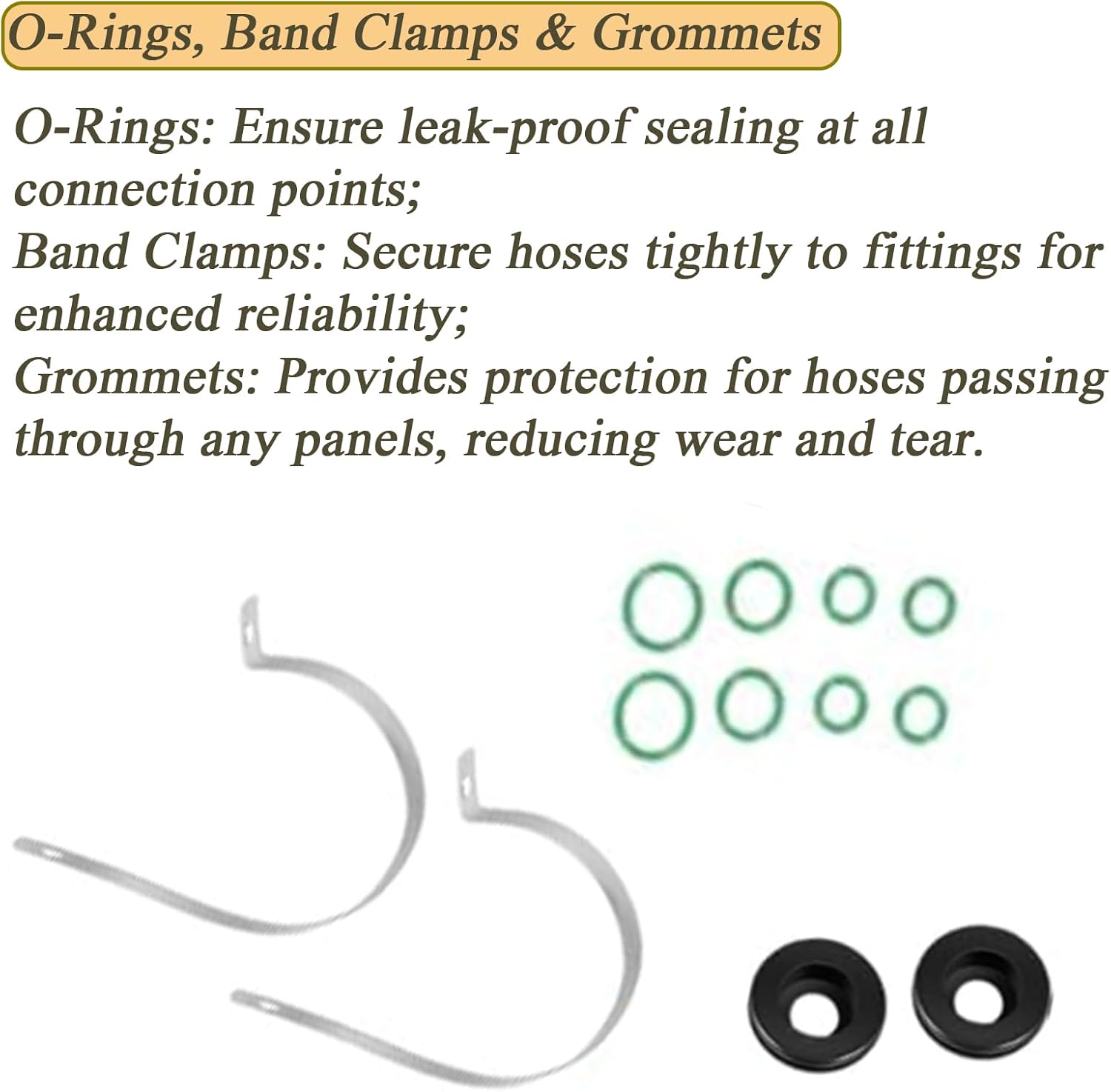 42810100 A/C Hose & Fitting Kit Complete Set for Custom Air Conditioning Lines, with AN6/AN8/AN10 Hoses, Straight & 90° Fittings, O-Rings, Band Clamps & Grommets