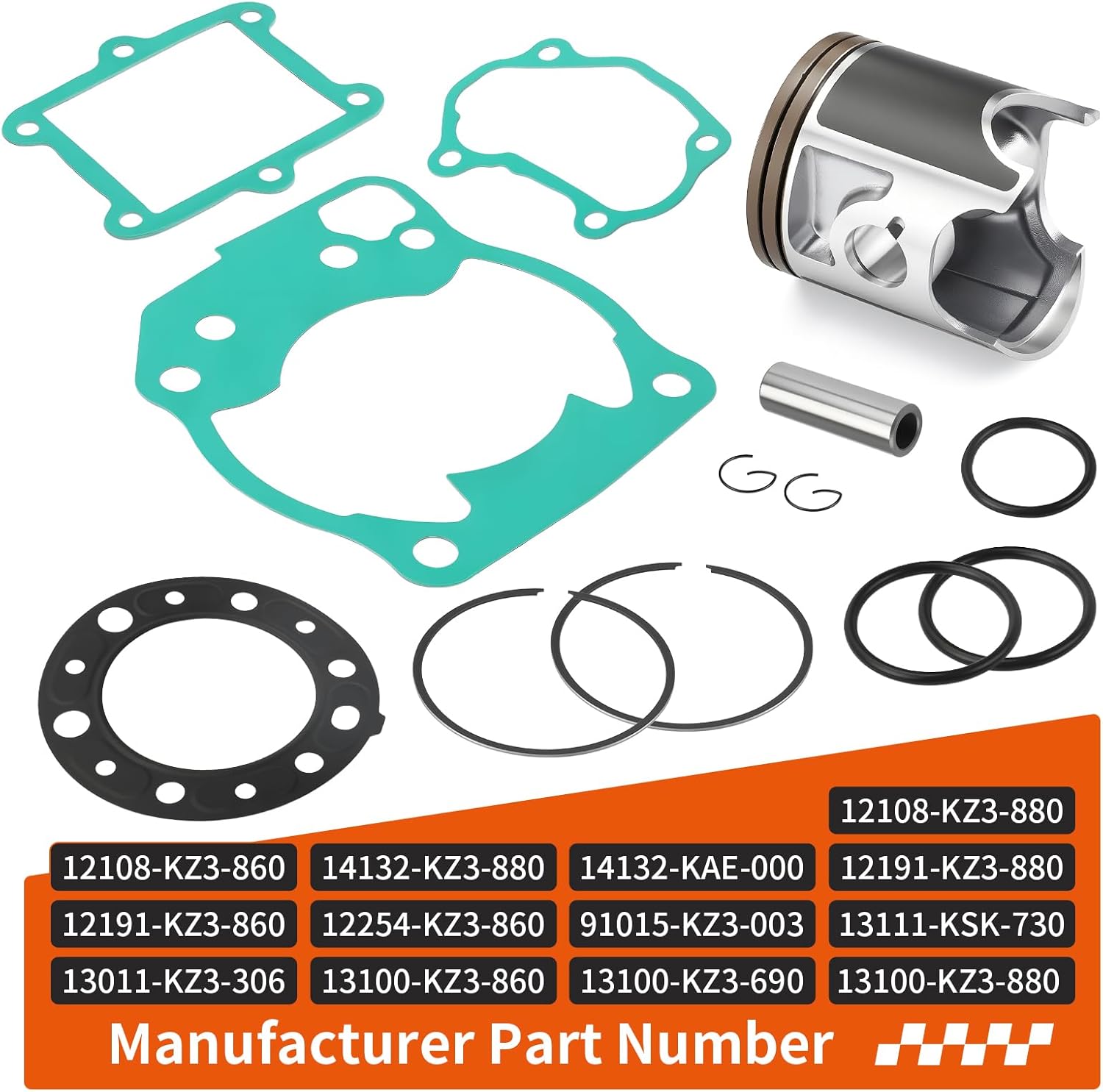 Reference OE/OEM Number:13100-KZ3-88013100-KZ3-69013100-KZ3-86013011-KZ3-30613111-KSK-73091015-KZ3-00312254-KZ3-86012191-KZ3-86012191-KZ3-88014132-KAE-00014132-KZ3-88012108-KZ3-86012108-KZ3-880Fits Following vehicle(s):For HondaCR250R 1992-1996Package Included:STD 66.34mm Piston x1Piston rings x2Piston Pin x1Clip x2Cylinder Head Gasket x1Cylinder Gasket x1Reed Valve Gasket x1Cylinder Side Gasket x1O-Ring(43X3mm) x2O-Ring(30.8mm)x1