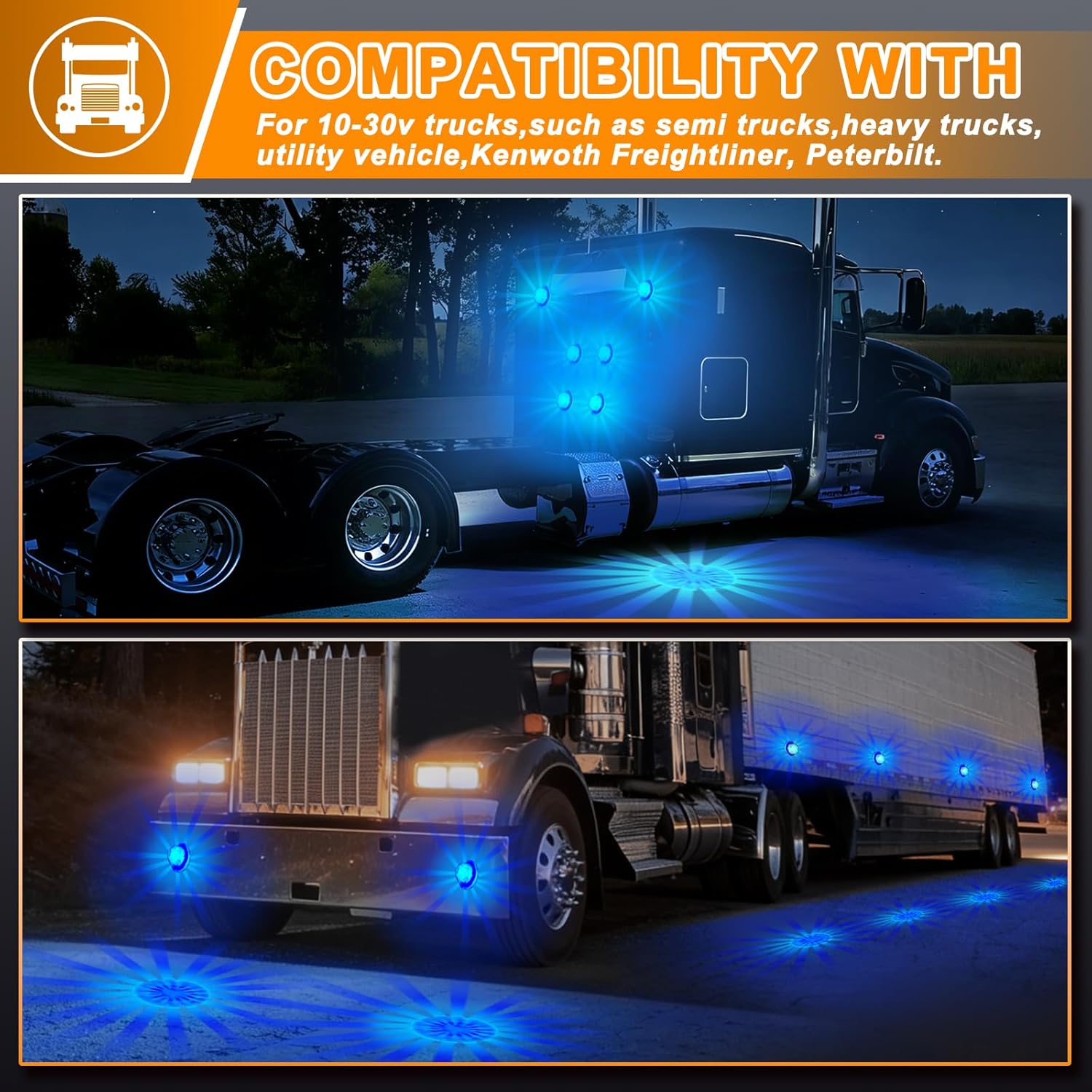 | Special Features | 10-30V Voltge, IP68 Waterproof, Marker Lights/Clearance Lights/Turn Signal Lights, use for 10-30v trucks, such as semi trucks, heavy trucks, utility vehicle, also use for Kenwoth Freightliner Peterbilt. Perfect as side marker light or under glow lights. Can be placed on bumpers, air cleaners etc. |