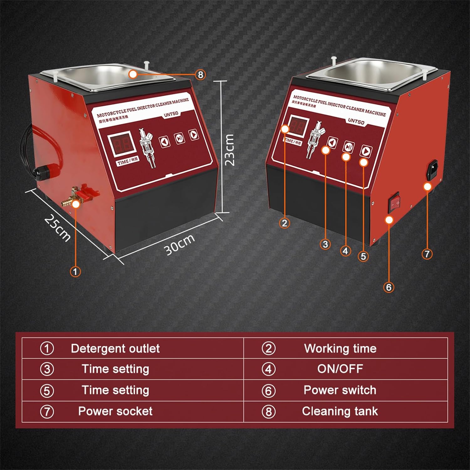 • 🚓[ADVANTAGE]: UNT50 motorcycle injector cleaner machine is an injector cleaning machine designed for motorcycles.It integrates ultrasonic cleaning technology with microcomputer controlled hydraulic closed-loop cleaning detection technology.This product simulates various operating conditions in the engine to clean and inspect the injector. It is especially convenient and simple to operate.