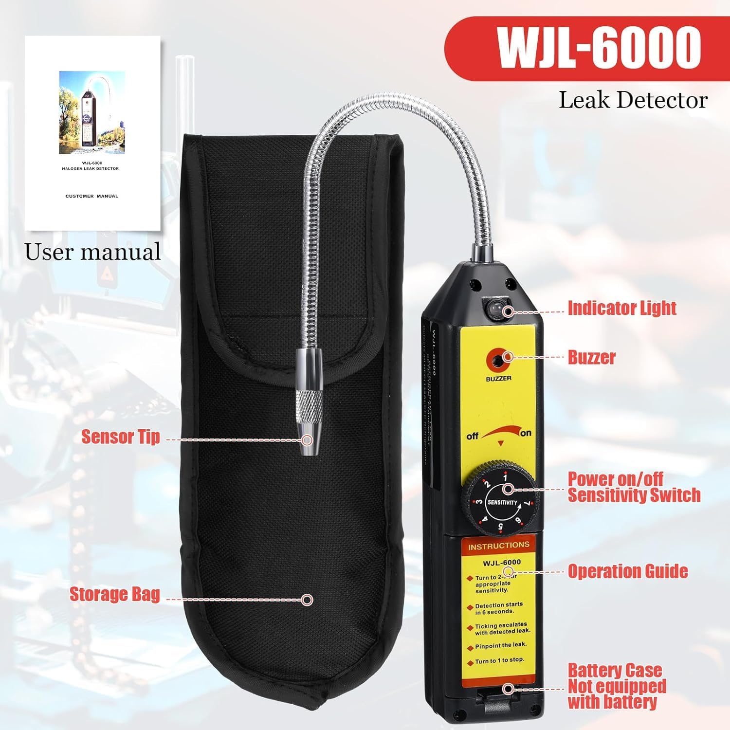 Features: Works with most types of UV leak detection dye. Pinpoint the origin of leaks of any kind with this air conditioner oil leak detector tool flashlight, even in bright environments. Help you inspect the leak stains in seconds! Impact resistant military grade aluminum weighing. Specifications: Material: metal, plastic Color: random Package includes: 1 X 1oz Hand Push Compressor Manual in type oil injector 1 x Protective glasses 1 x Leak Detector 1 x R134a low side quick coupler 1 x R1234yf low side quick coupler 1 x R410 mini split adapter 1 x Core remover 1 X 51 LED UV flashlight Notes: Manual measurement, please allow slight errors on size. The color may exist a slight difference due to different screen displays. Small parts included, please keep them away from little kids to avoid swallowing risk
