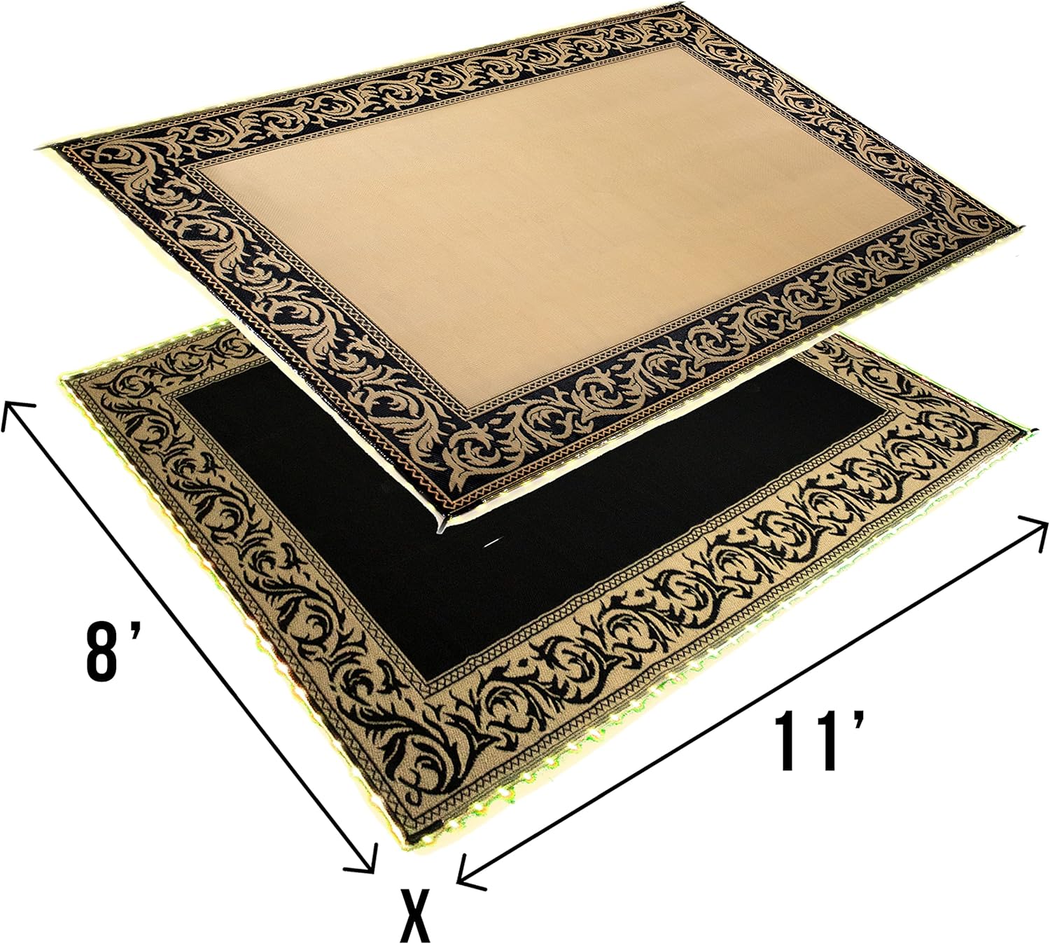 Stylish Camping RA811WL Reversible LED Illuminated Mat - Classic Regal, Black/Beige, 8' x 11'