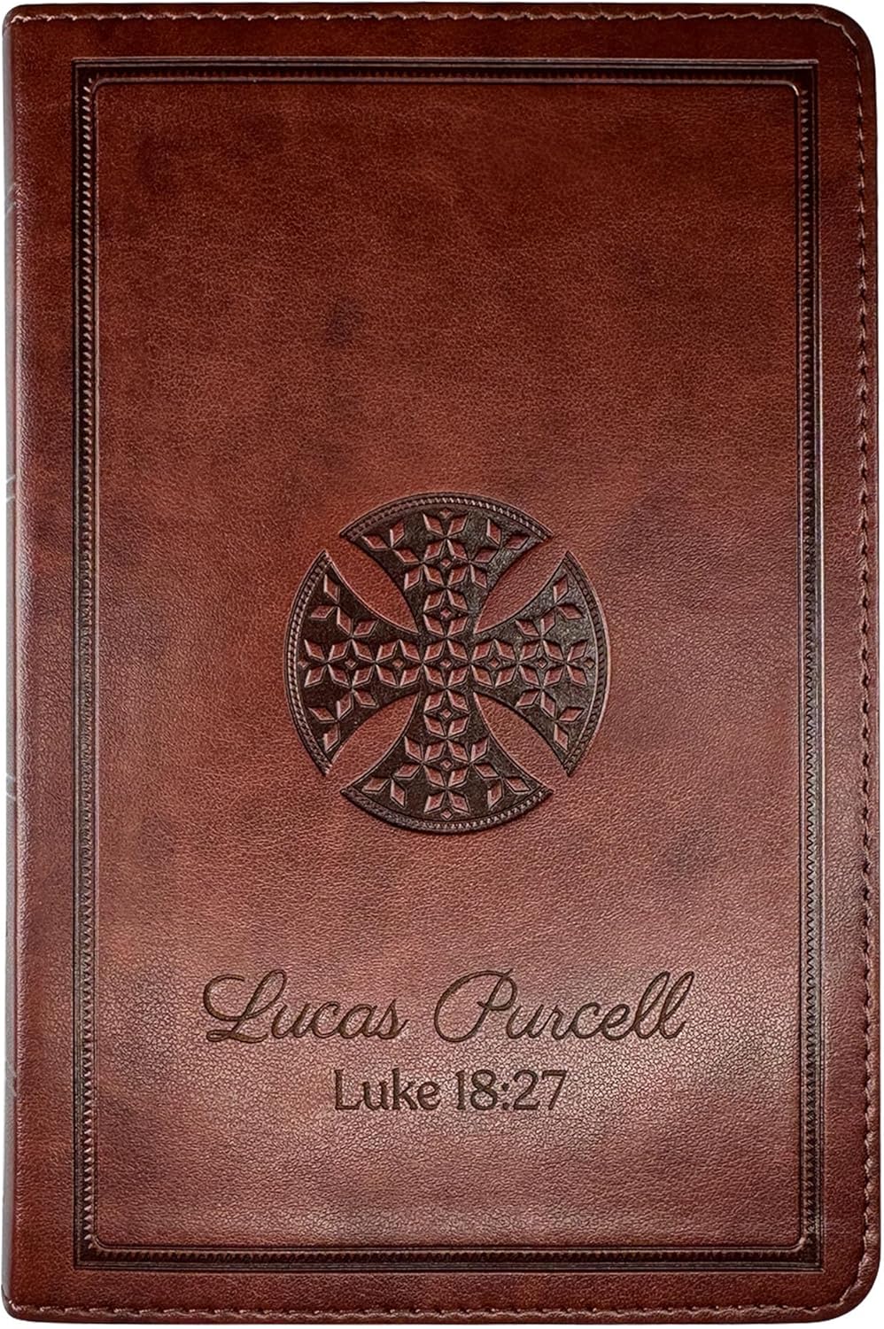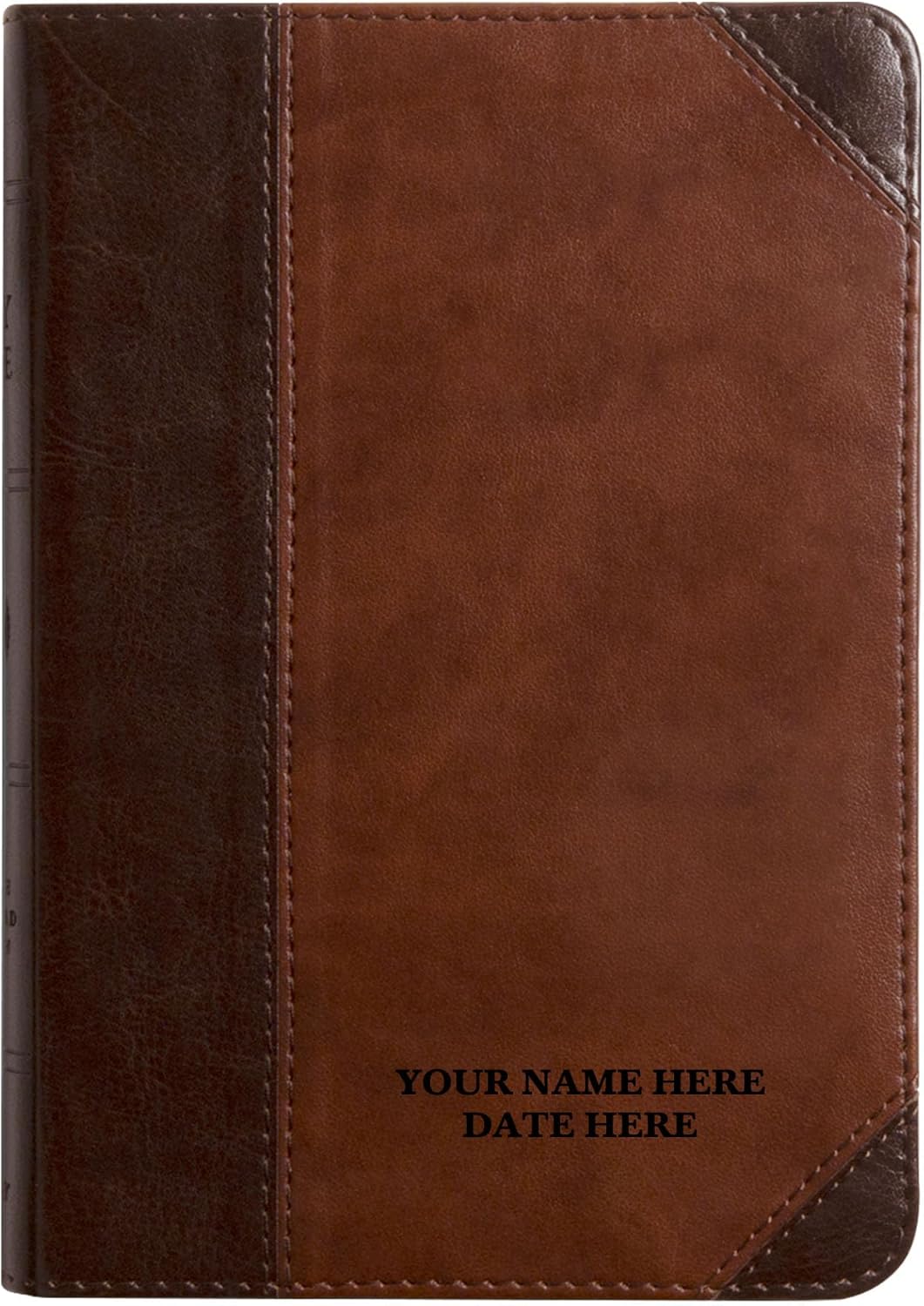 This beautifully crafted SMALL COMPACT Holy Bible features YOUR NAME elegantly imprinted in gold foil on the front pink faux leather cover, creating a truly personal keepsake. The sophisticated pink cover showcases elegant stitching and durable construction designed for daily use and lasting beauty. Contains the complete, unabridged King James Version (KJV) scripture with 1,525 pages of sacred text printed on premium thin Bible paper in a thoughtful 2-column layout that maximizes readability while maintaining the compact size. Gold gilded edges add elegance and protect pages from wear, while the lay-flat binding allows comfortable, hands-free reading without damaging the spine. Words of Christ appear in Red for easy identification during devotional reading. Equipped with helpful reference tools including a 1-year reading plan to guide your spiritual journey, a Bible verse finder to locate specific passages quickly, and a short concordance for convenient reference of key terms throughout the text. The convenient size (6.7" x 4.5" x approximately 1.25" thick) fits perfectly in purses, bags, or on nightstands, and includes a delicate pink satin ribbon marker to keep your place. Makes an unforgettable personalized gift for confirmations, baptisms, graduations, weddings, or any meaningful occasion. PLEASE REVIEW PHOTOS CAREFULLY - images display the actual LARGER PRINT size and demonstrate how your custom name will appear after gold foil imprinting on the pink cover.