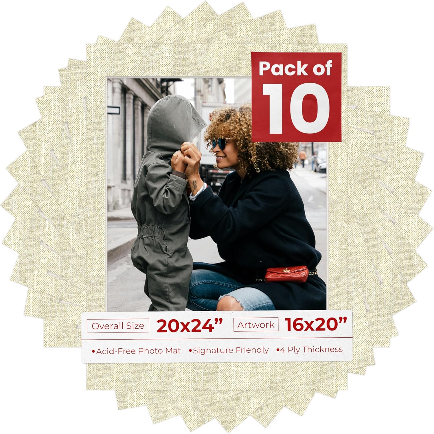One Single Mat Without Backing Or Mat Bag, Featuring A Picture Opening For A 16X20 Inch Photo, To Fit In A 20X24 Inch Picture Frame. Photo Openings Are Beveled Cut 0.5" Smaller Than The Art Size Advertised To Overlap The Photo And Help Keep It Securely In The Frame. Made To Display A 16X20 Photo And Fit In A Standard 20X24 Picture Frame. Vibrant Fresh Linen Canvas Color Acid Free Picture Matting. Great Replacement For Damaged, Dirty, Or faded Matting In Your Old Frames. Premium Quality: Our Precut Photo Matboards Are Acid Free & Precision Cut With A 45 Degree Bevel By Machine For Perfect Corners And No Over-Cuts Every Single Time. Precut Acid-Free, Professionally Bevel Cut Matte Board. Custom Frame Shop And Archival Quality. All Of Our Precut Matboards Are Manufactured In The Usa.