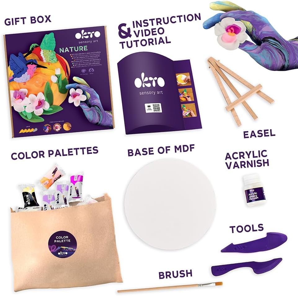 OKTO Art Kit Hummingbirds | Succulents Art Set 3D for Home Wall Decor | Craft Kits for Adults and Teen | Craft Box with Modeling Clay for Succulents | Hobby Kits Succulent DIY Kits