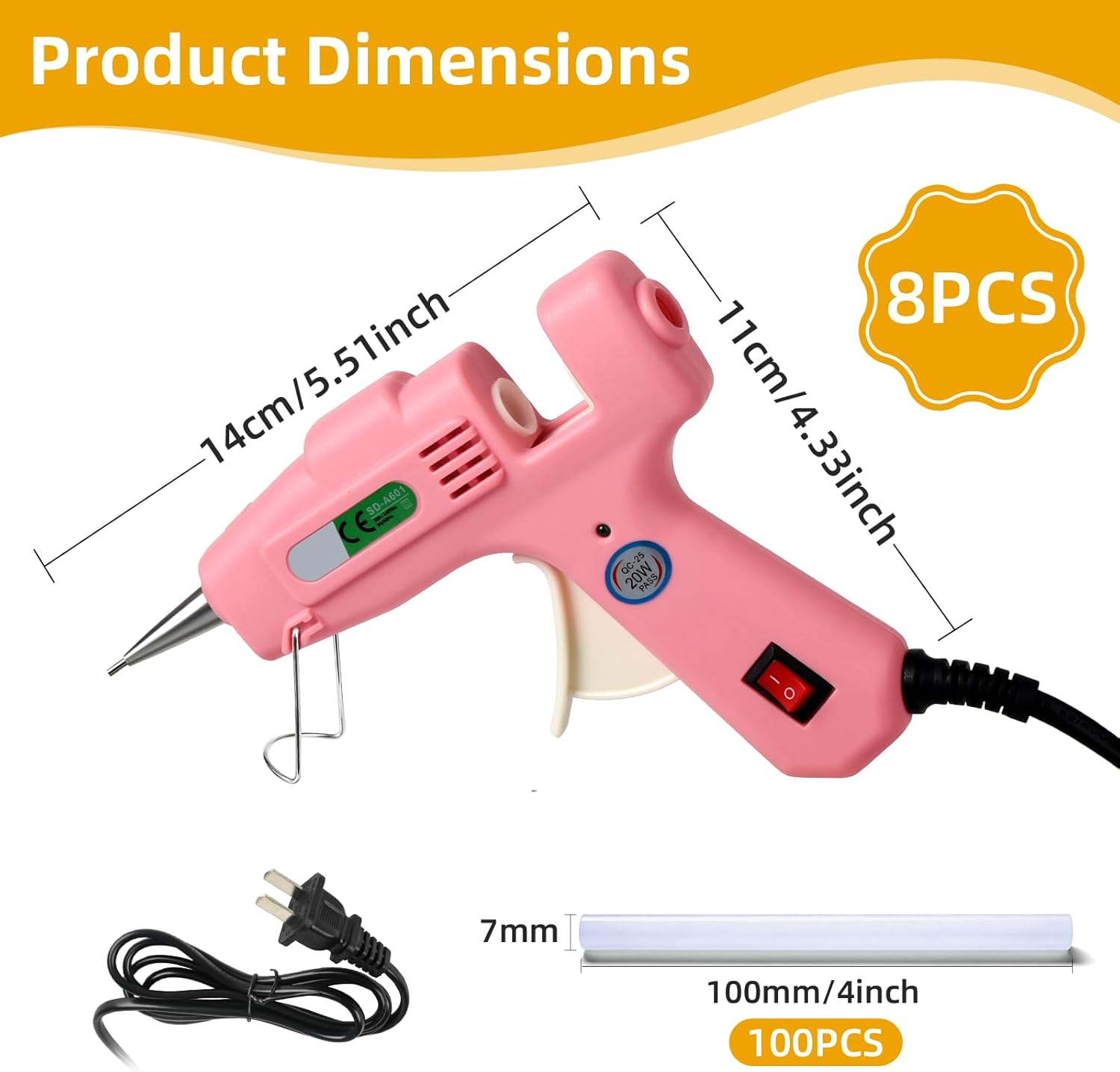 Hot Glue Gun Kit -Mini hot glue gun heats up and releases glue within 1-2 minutes and then keep the temperature constant automatically.Unleash Creativity & Tackle DIY Projects with Our Safe, Bulk Glue Gun Kit! -Whether you're a teacher stocking the art room, a parent planning a kids' craft party, or a DIY enthusiast, this 8-Pack Hot Glue Gun Kit is your go-to solution for strong, fast bonds. -Crafting should be fun, not frustrating. The lightweight and mini-sized guns are easy for small hands to grip and control, reducing fatigue during long crafting sessions. Product Specifications: Product: Hot Glue Gun Kit Color: White, pink, blue, green Material: plastic Size: 14cm/5.5inch*11cm/4.33inch Quantity: 8 pack Ideal for Endless Projects: Classroom & Kids' Crafts: Perfect for school art classes, STEM projects, and birthday parties. Home DIY & Decor: Create custom decorations, repair toys, and assemble models. Quick Fixes: Securely bond wood, fabric, paper, and more in seconds. Packliste: 8 Pcs Hot Glue Gun Kit with 100 Glue Sticks