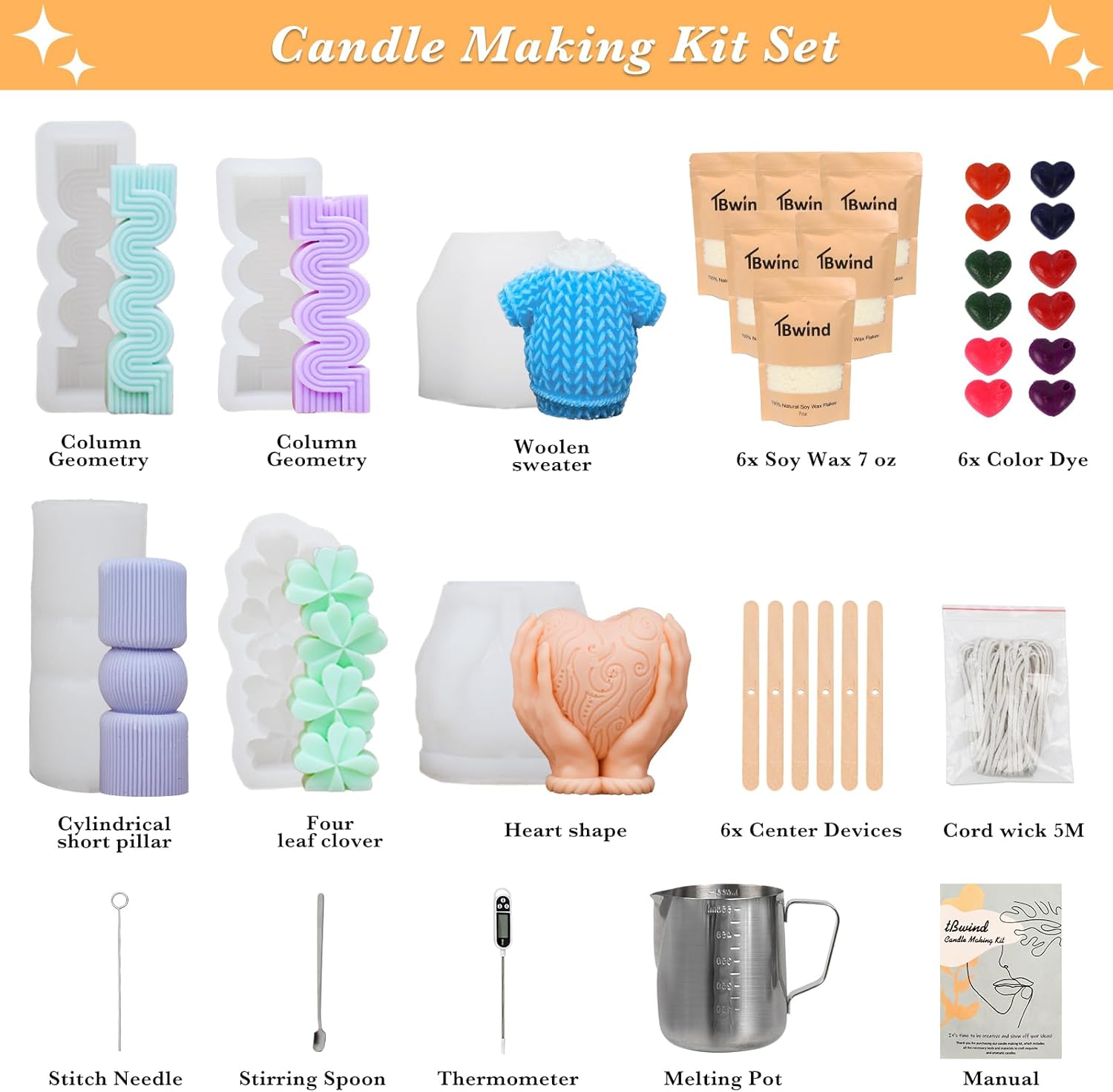 | Included Components | 6pcs 3D candle molds, 6 packs Soy wax, 6 dye blocks, cord wick, stitch needle, melting pot, stirring spoon, thermometer |