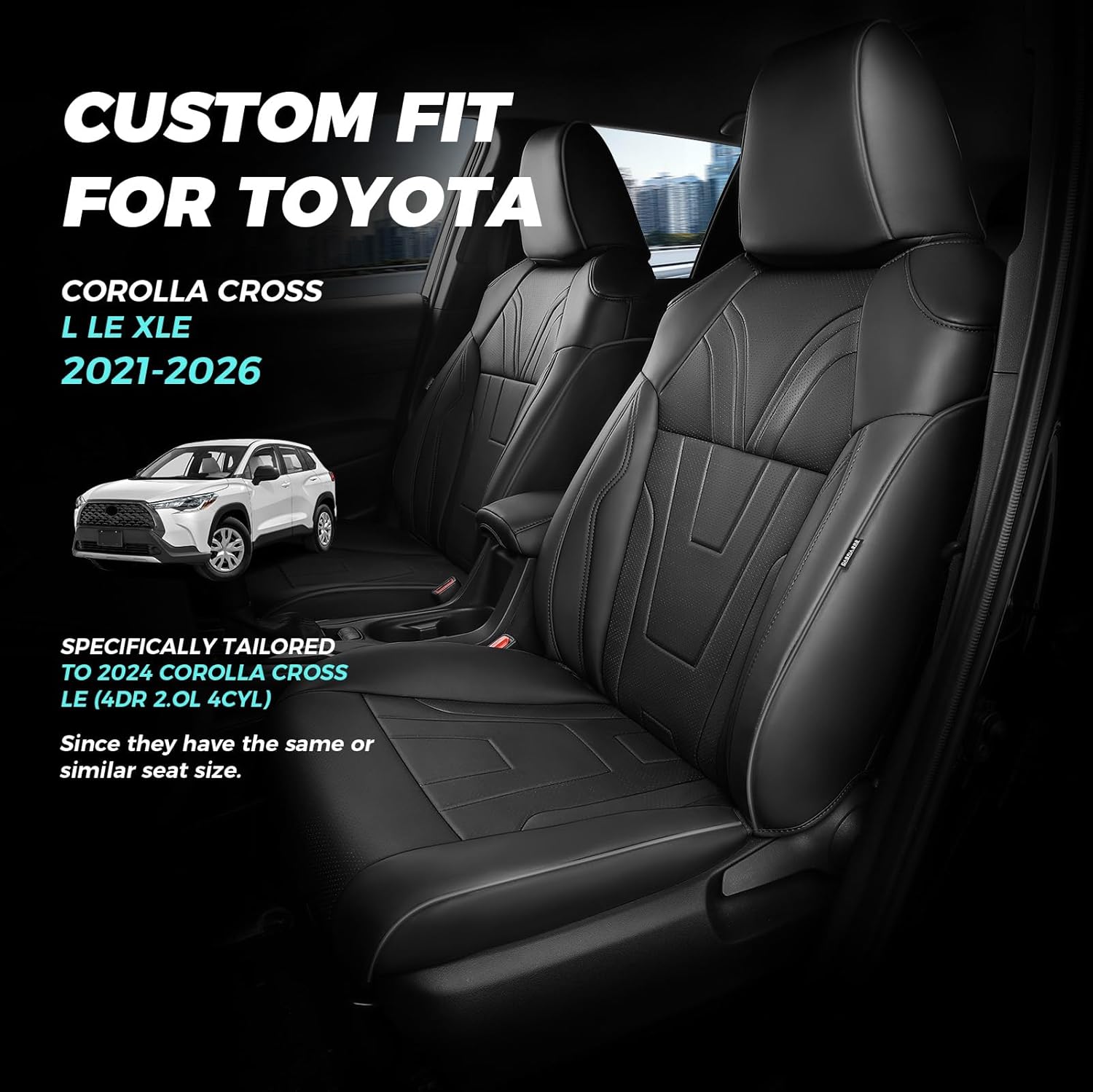 | Included Components | Black Custom Fit Seat Covers for TOYOTA Corolla Cross L LE XLE 2021 2022 2023 2024 2025 2026 |