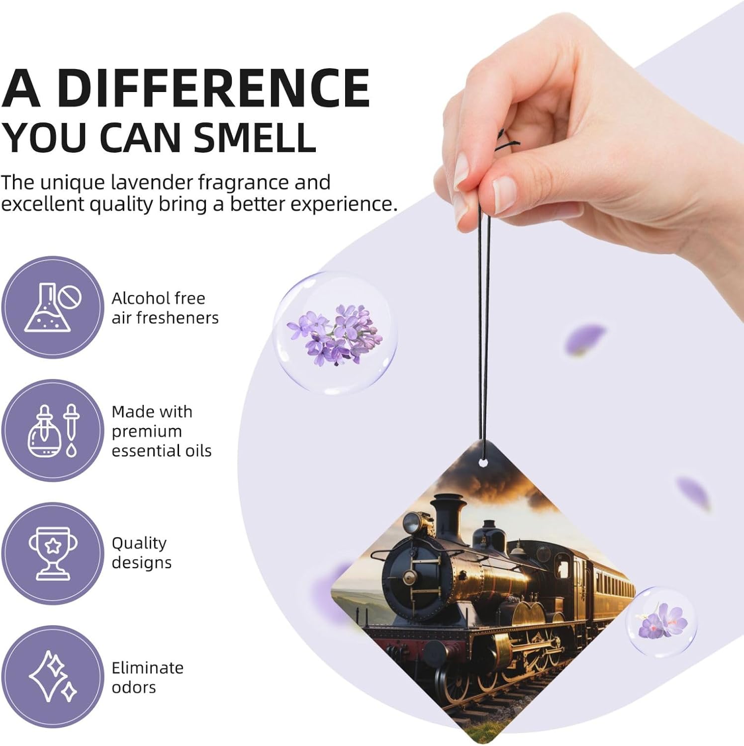unobstructed vision: this Steam Train rearview mirror scented fresheners doesn't obstruct your vision while driving, ensuring a safe and comfortable journey every time.easy hang: we've included a convenient rope for hanging, making it super easy to attach this christmas air freshener wherever you prefer. No fuss, no mess - just hang and enjoy the fragrance.incredible package deal: this rearview mirror pendant aromatherapy tablets package includes 6 pieces in 6 captivating designs and 1 refreshing scents (lavender). Experience a variety of delightful fragrances that will keep your surroundings smelling wonderful throughout the day.environmental protection: the car air fresheners for women smell can last for about 1-2 weeks. When the smell fades, you can add your favorite perfume. Continue to use, reusable6 pcs included: you will receive 5 individual shoe cabinet fresheners, each in its own package; enjoy consistent scents for nearly a year, or share them with your friends or families