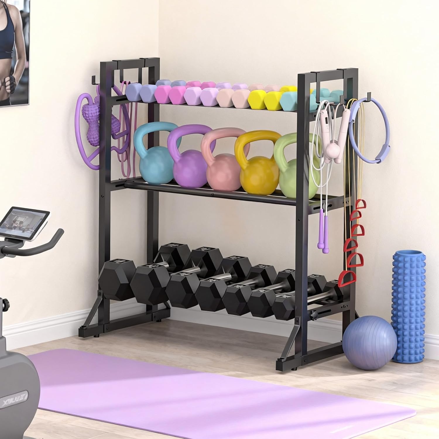 3-Tier Adjustable Dumbbell Rack Stand - Heavy-Duty Carbon Steel Weight Storage Organizer for Home Gym, Easy Assembly