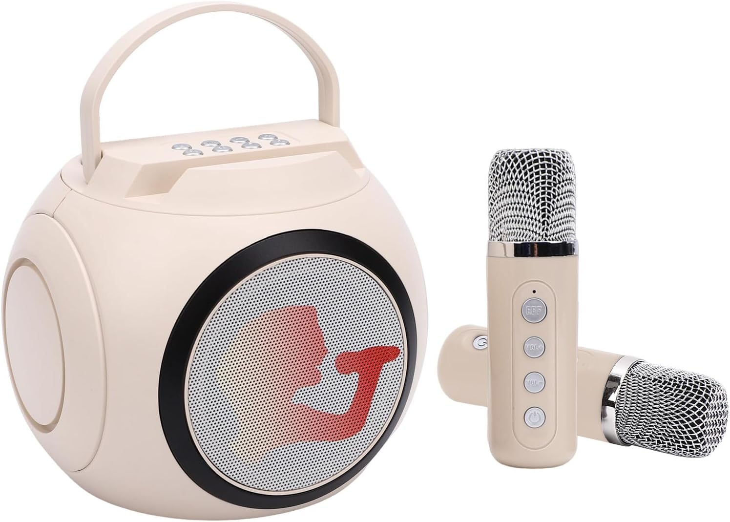 1. Karaoke Experience: Our BT speaker features full-frequency speakers and a dedicated bass enhancement unit, delivering premium sound quality for an immersive karaoke experience. It's the Karaoke Machine for your home entertainment. 2. Dual Microphone Connectivity: With 2.4G transmission technology, this Karaoke Speaker allows two microphones to connect simultaneously, enabling joyful duets from up to 15 meters away without any annoying feedback. Enjoy seamless singing sessions with friends and family. 3. Advanced Sound Effects: The built-in sound adjustment features provide multiple sound effects, allowing you to customize your sound. Create a professional recording studio environment at home and sing like a star with our innovative Karaoke Machine. 4. Portable and Versatile: Our compact and lightweight design ensures that you can take the Karaoke Speaker anywhere—be it camping, parties, or just casual gatherings. Connect effortlessly to your smartphone or tablet and sing whenever inspiration strikes. 5. Vibrant Lighting Effects: Activate colorful LED lights that sync to the rhythm of your music with a simple press of a . The dynamic RGB color transitions enhance the atmosphere, making every singing session feel like a concert with our exciting Karaoke Machine. Spec: Material: ABS Frequency Range: 20Hz-20KHz Signal-to-Noise Ratio: ≥100dB Speaker Battery Type: Rechargeable Battery (Built-in) Speaker Battery Capacity: 1800mAhSpeaker Size: Approx. 15 * 13.5 * 18 cm / 5.9 * 5.3 * 7.1 inch Microphone Battery Type: Rechargeable Battery (Built-in) Microphone Original Battery Capacity: 400mAh Microphone Size: Approx. 12 cm / 4.7 inch Package List: 1 * Speaker 2 * Microphones 1 * Charging Cable 1 * User Manual