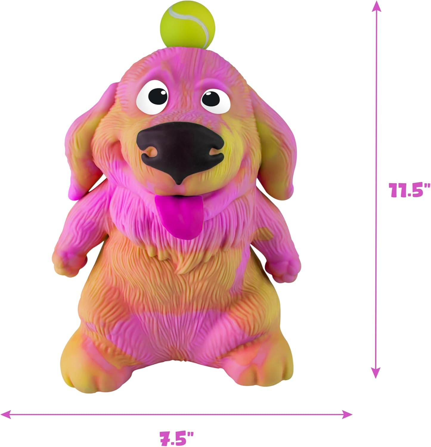 Get ready to fall in love with your newest squishy BFF, the ORB Funkee Animalz Jumbo Dog! With cute floppy ears, big puppy dog eyes, and now featuring an attached tennis ball, the adorable Funkee Jumbo Dog is the next must have in the ORB Funkee Monkee and Funkee Animalz collection! This extreme Jumbo Dog weighs in at a whopping 5.2 pounds of posable, smushable, splattable, stretchable, and pettable fun. Jumbo Funkee Dog features a brand new Yellow and Pink tie-dye skin that makes every Funkee Dog unique, and no two exactly alike! Twist, shape, squeeze, and pose your Funkee Dog to match your mood! Create funny expressions to entertain your friends! Smush it around and return it to its original shape! It’s even the ultimate toy for stress relief! The possibilities are endless! These Wild and Wacky Dogs are part of the hottest craze on TikTok and Instagram, with over 6 Billion views, so create your own Funkee pose and share today! Irresistibly soft and squishy, the Jumbo Funkee Dog makes a fantastic gift for everyone - from kids to adults. Once you pick it up, you just won’t want to put it down! Jumbo Funkee Dog's skin is composed of a custom blended, extra-strength thermoplastic rubber, and is filled with a specially formulated silica designed to hold a pose. This makes this cute pup super durable and washable for extra long lasting fun! Join the viral craze with the Original Jumbo FUNKEE Dog, and start twisting, posing, and shaping today! Jumbo Funkee Dog is not alone! Collect the whole Funkee Animalz family including their Funkee Monkee friends! There are many different colors and sizes to collect with more to come! Jumbo Hairdo Funkee Monkee (2 colors), Mega Funkee Monkee Clothing Surprise 3 Pack, Ultra Funkee Monkee, and Limited Edition Golden Monkee, Limited Edition Super Hero Monkee, and Limited Edition Hippie Monkee are now available along with Jumbo Funkee Pig (2 colors), Jumbo Funkee Cat (2 colors), Jumbo Funkee Blobby (2 colors), and LIMITED EDITION Jumbo Funkee Bunny (2 colors). Funkee Monkees and Funkee Animalz are fun, exciting, and popular gifts for party favors, prizes, goodie bags, birthdays, office and executive desk toys, holiday gifts, Christmas stocking stuffers, Easter baskets, little everyday presents and more - check back soon because more Funkee friends are on their way!