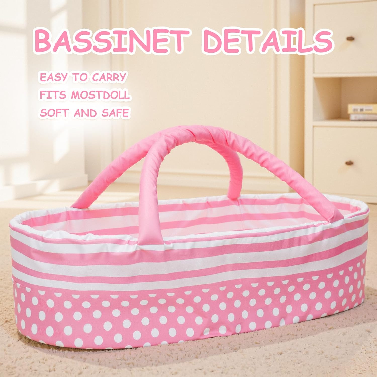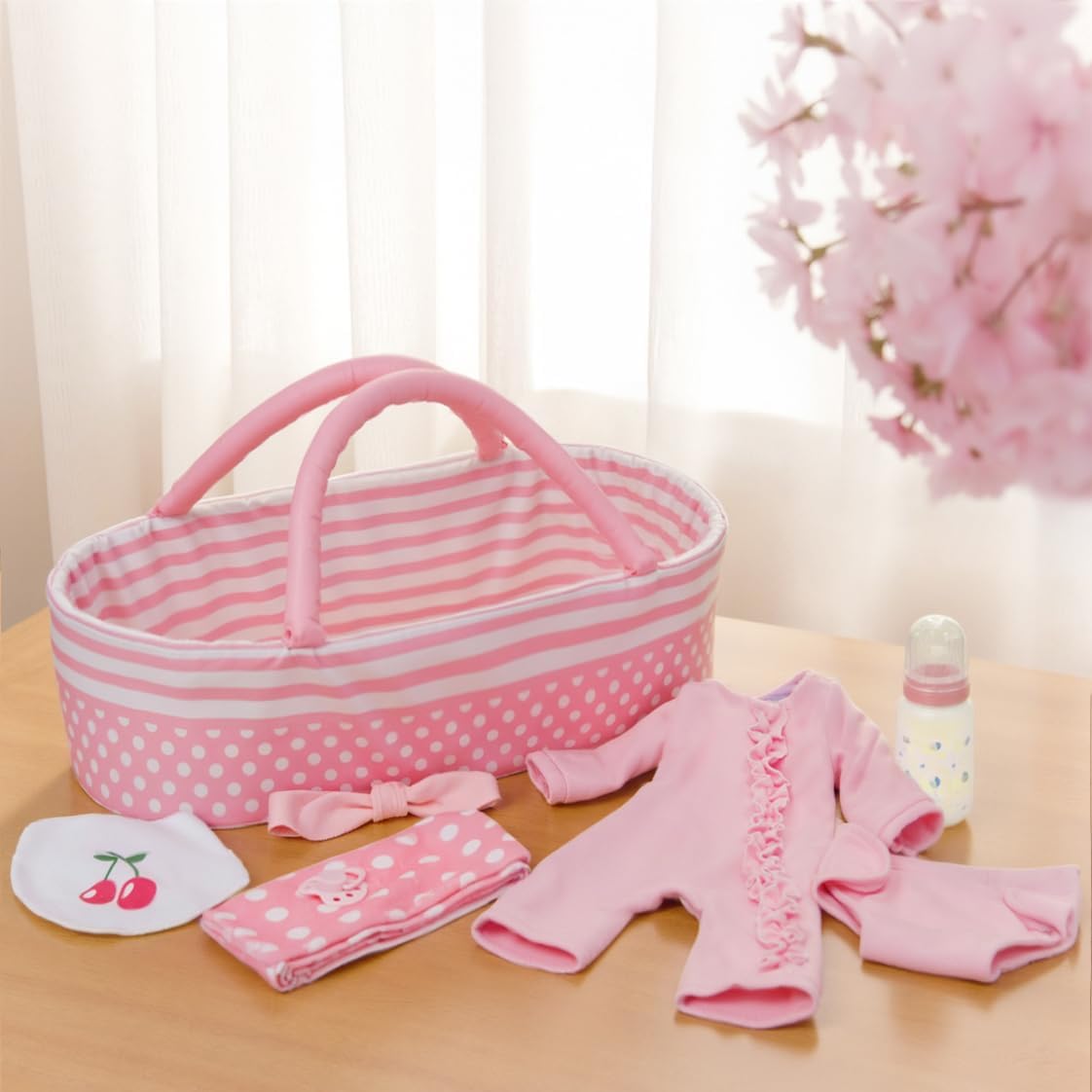 | Included Components | Blue dot bassinet, baby doll gloves, hat, feeding bottle, blue onesie, diaper, bib, plush toy, towel, |