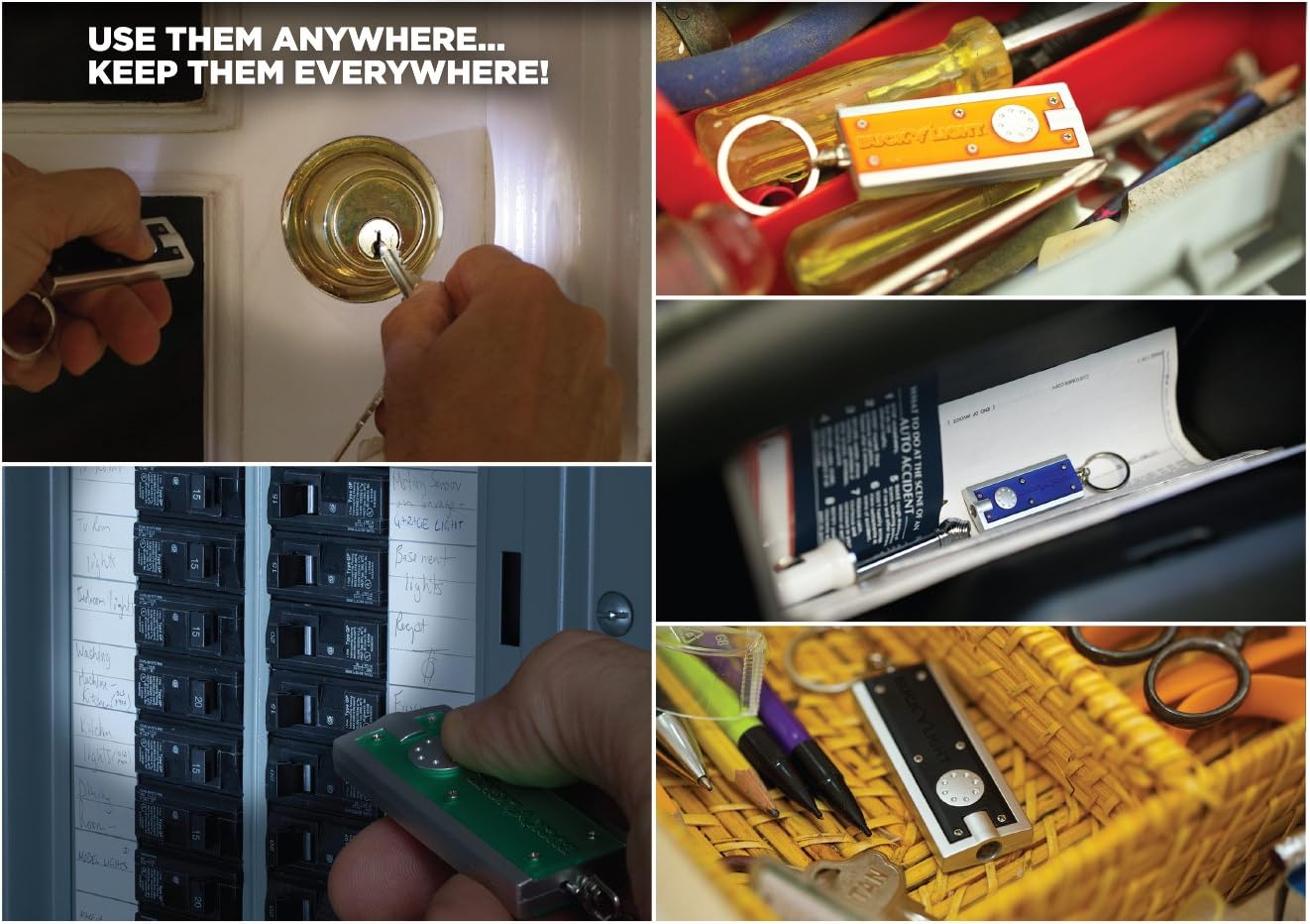 Don’t get caught in the dark ever again! The Buck Light is a powerful LED keychain light ! Put’em everywhere: kitchen, bedroom, toolbox, office, care, boat, RV, & more! The ultra-bright LED bulb lasts for over 100,000 hours. Buck Light fits in your pocket and your keychain so you’ll always have a personal light at hand! Easy to Use Long Lasting and Incredibly Bright Convenient to Carry Tough and Durable