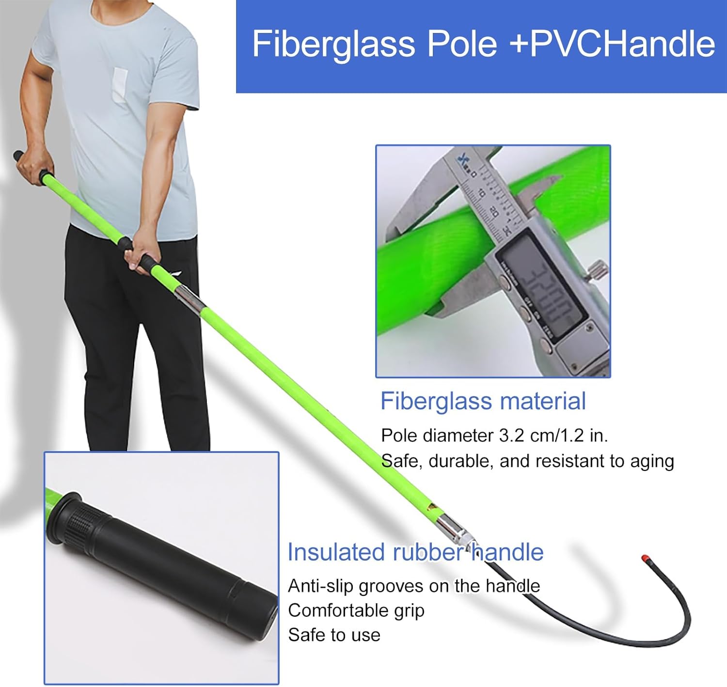 The Insulated Rescue Hook is an essential tool for power line workers, designed to safely rescue disabled or injured individuals in hazardous locations. Its operation is straightforward: simply grasp the handle and position the hook under the armpit or waist to pull the victim to safety. It is recommended to wear insulating gloves during use and ensure the hook's surface is dry before deployment.Features:1. Constructed from high-strength insulating fiberglass material, this pole provides effective current isolation, minimizing the risk of electric shock injuries to rescuers.2. The rubber insulated handle delivers enhanced protection and insulation for safer usage.3. The hook's wide opening and smooth curve facilitate easy handling without causing harm to the victim.4. Lightweight and portable design allows for easy cleaning and maintenance.Specifications:- Material: Insulating epoxy resin- Color Options: Green, Yellow- Pole Diameter: 3.2 cm (1.3 in)- Hook Diameter: 1.3 cm (0.51 in)- Hook Opening: 45 cm (17.7 in)- Function: Insulation and auxiliary safety rescue equipment- Length and Operating Voltage: - 1 m / 39.4 in / 3.3 ft (1 section) - Operating voltage: 10 kV - 1.5 m / 59 in / 4.9 ft (1 section) - Operating voltage: 35 kV - 2 m / 78.7 in / 6.5 ft (2 sections) - Operating voltage: 110 kV - 3 m / 118 in / 9.8 ft (2 sections) - Operating voltage: 220 kVPackage includes:- 1 insulated rod