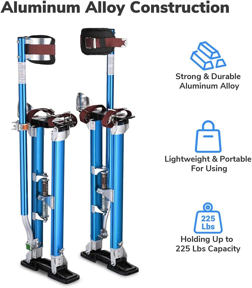 With this new drywall stilt, you can stretch your legs with natural movement. This creates more balance, better control, more stability and less fatigue. With these new ladders on stilts, this will be a thing of the past. This aluminum alloy stilt is suitable for indoor and outdoor home decoration, outdoor construction projects, stilts, clown shows, climbing and descent scaffolding, climbing and descent high chairs, reducing labor intensity and improving work efficiency. The best partner for your work! Specification: Material: aluminium alloy. Load Limit: 102 kg/225 lb Product length: 46-76 cm/18-30 inches; 61-102 cm/24-40 inches. Weight: approx. 6.2 kg, 7 kg. Package contents: 1 x Aluminum Drywall Stilts