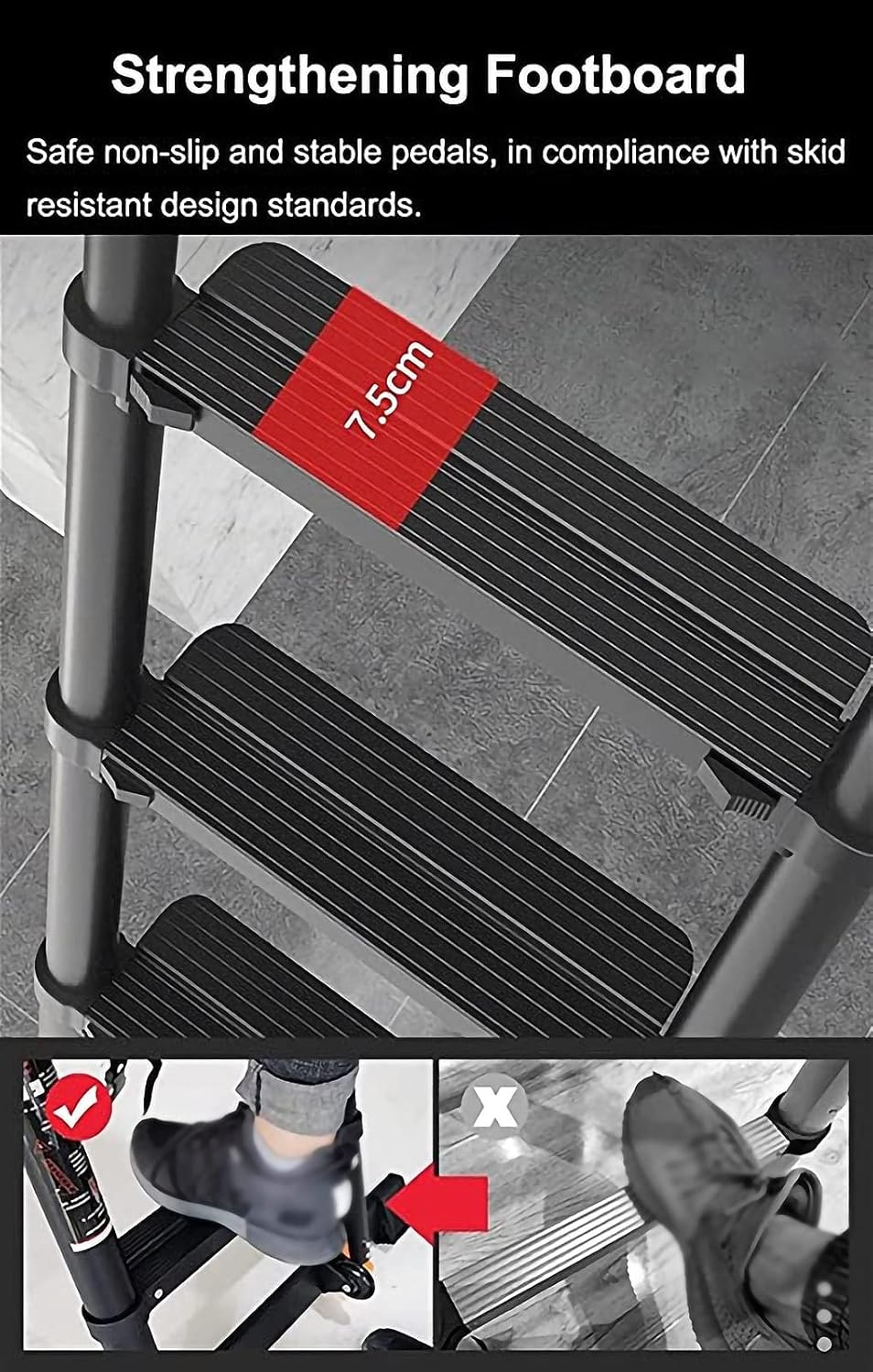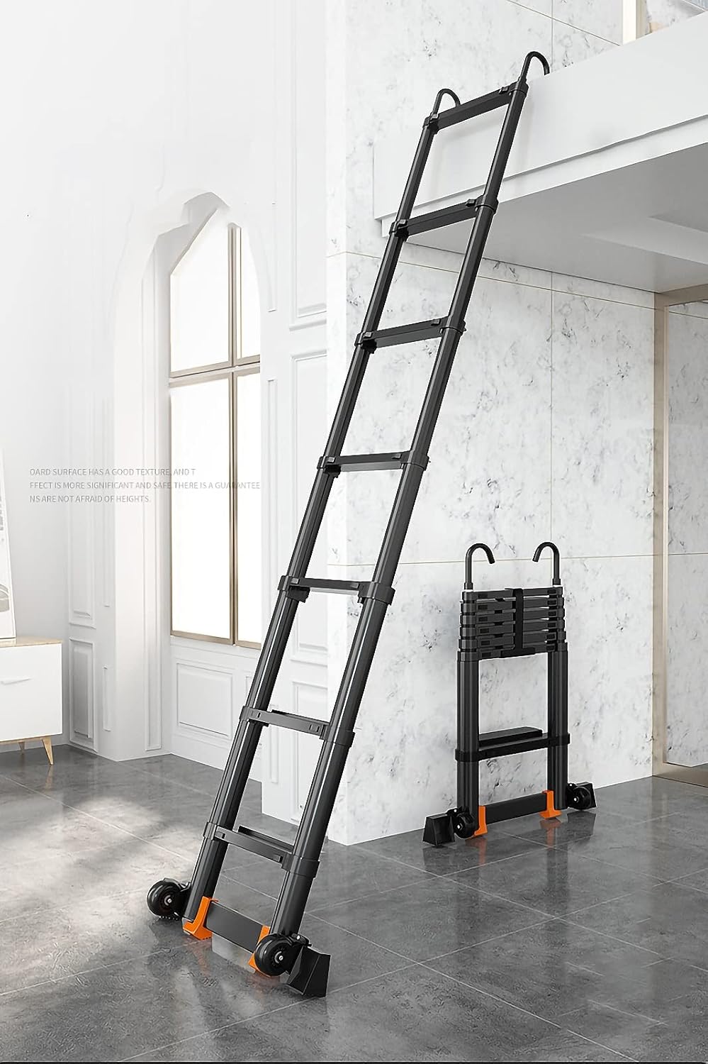 The ladder is highly versatile and can be used for many tasks, no matter at home or work. Easily stored in everywhere when ladder is closed.Specification:Material: Aluminum alloyColor: BlackUnfold Height: 2.3m/7.5ft, 2.7m/8.8ft, 3.5m/11.5ft, 3.9m/12.8ft, 4.7m/15.4ft, 5.1m/16.7ft, 5.5m/18ftLoad: 150kg/330lbsPackage contents:Telescopic Ladder x 1Safe Operation:1.When you are closing the ladder, please do not place any parts of your body, including hands and fingers, between the rung.2. If you want to use several steps as a short ladder, please open the steps from top and keep the bottom steps unextended.3. When you close the ladder, please start from the bottom pedal.Note:1. Due to manual measurement, there may be a difference of 1-2cm.2. The reason computer resolution, there may be differences in color to the actual goods received prevail.