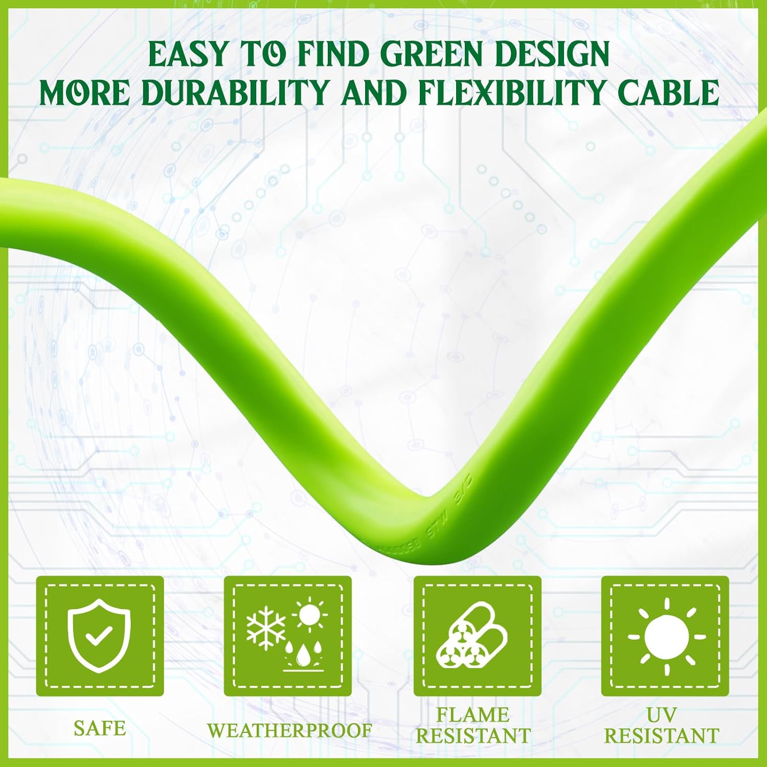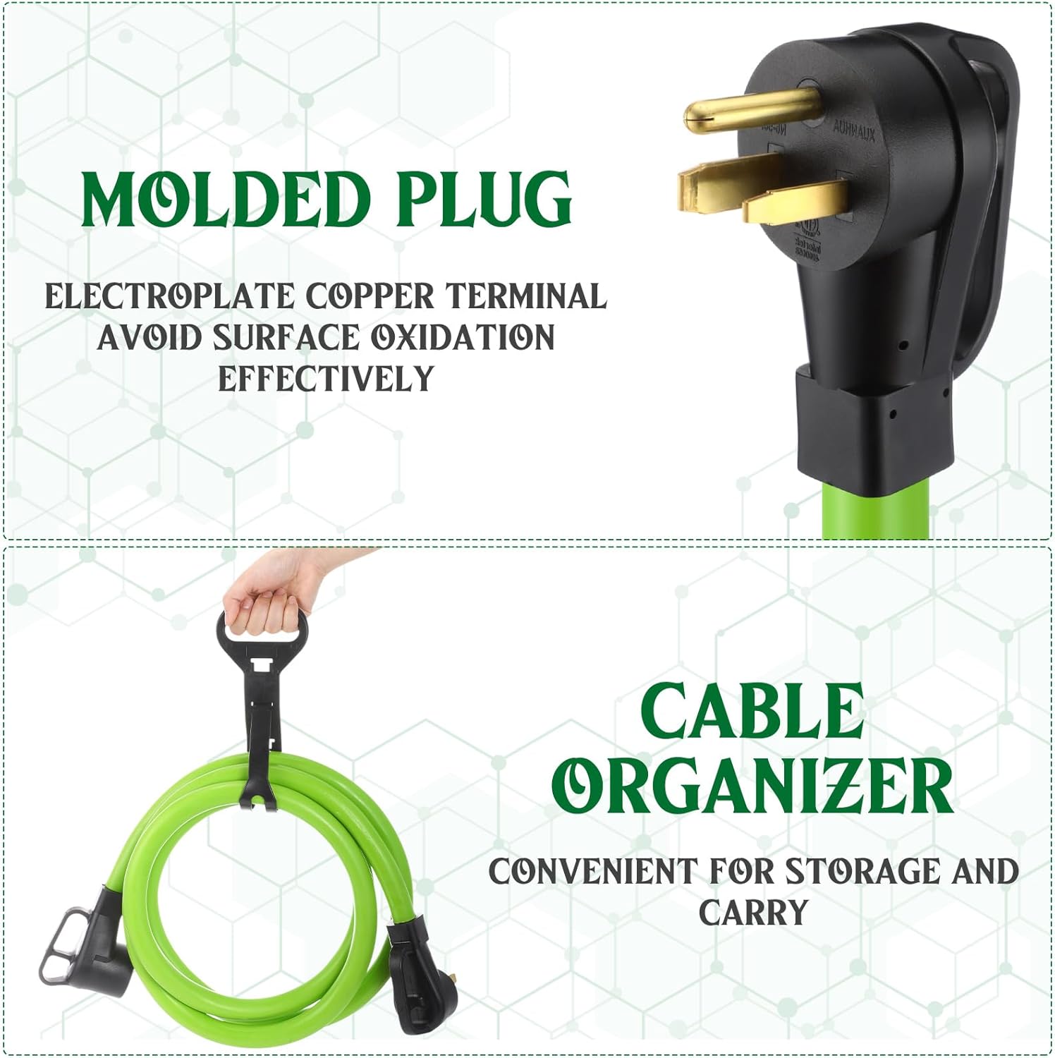 Features: Heavy duty: Industrial grade 6 gauge cord with the strength and safety for any welding application. Stretch your workshop: The 20 feet heavy duty welder machine cord, allows you to move your welder around the shop and close to your welding project for added convenience. Specifications: Material: copper Color: green Size: about 50ft Package includes: 1 x Welder extension cord Notes: Manual measurement, please allow slight errors on size. The color may exist a slight difference due to different screen displays