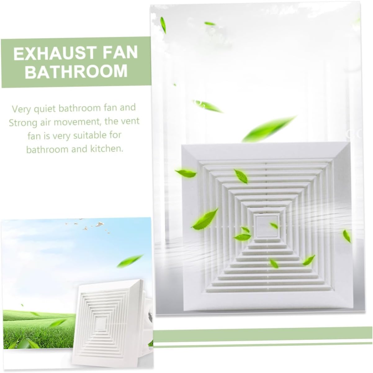 Package List 1 x bathroom vent fan Features -Material:PVC -Color:White - Size: 24.00X24.00X12.00cm/9.43X9.43X4.72in -Power: 40W ceiling fan bathroom -Product Info:Silent exhaust fan - The bathroom fan makes the wall look clean, won't affect the aesthetics of your home wall vent fan. - No cut installation and replaces most small bathroom fan using existing opening. bathroom vent fan through wall - Very quiet bathroom fan and Strong air movement, the vent fan is very suitable for bathroom and kitchen wall exhaust fan. - Ventilation fan is perfect for greenhouse, attic, bathroom, kitchen, basement, garage, office bathroom fan. - Good workmanship details, not easy to break, sturdy and strong, the vent fan can serve you well exhaust fans bathroom.Goods Informationbathroom exhaust fan This type of fan is designed for bathroom and kitchen use, expelling moist, ensuring that your bathroom/kitchen stays dry, fresh.bathroom decor Bathroom ventilation fan is convenient and helps to remove excess moisture.exhaust fan for bathroom Simple structure and excellent craftsmanship make it easy to use and have excellent durability