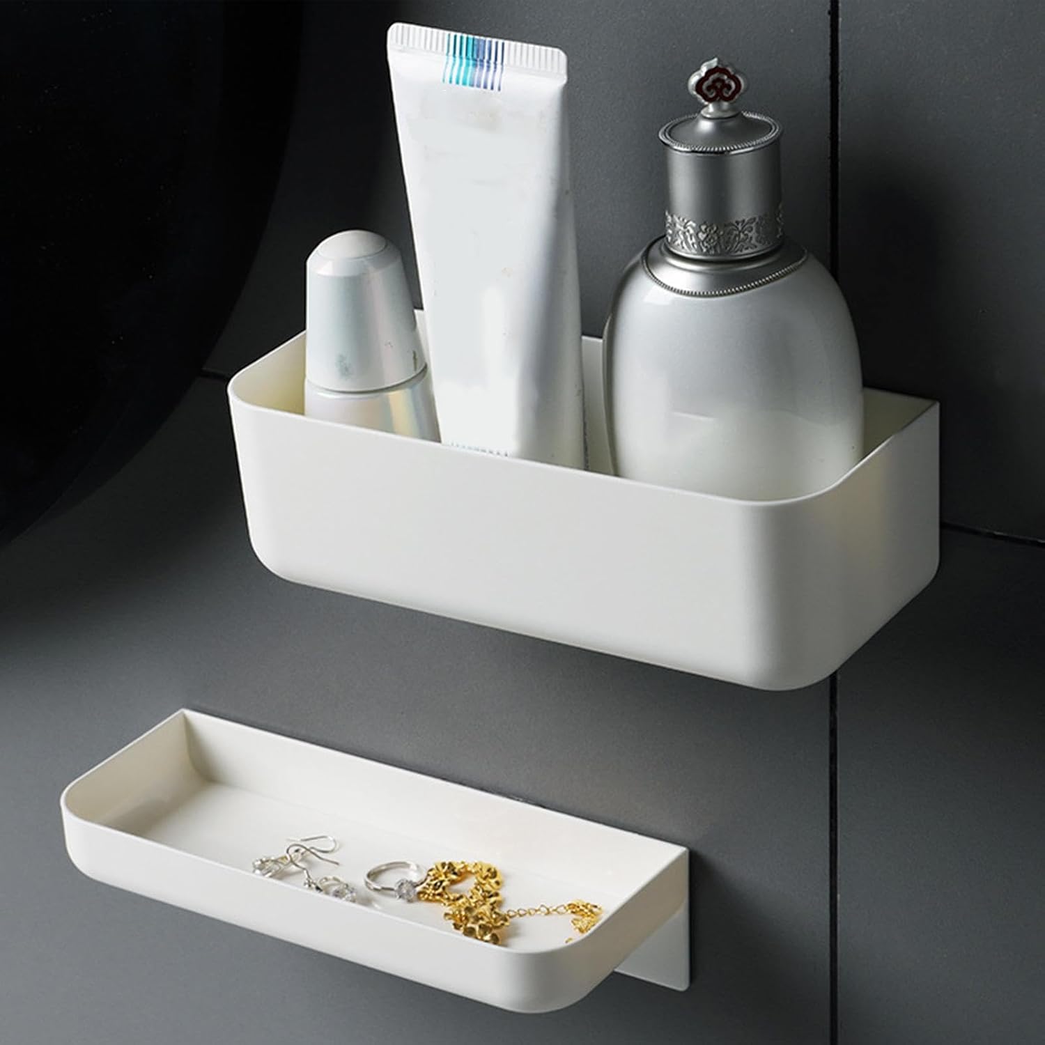 Product description Description:【Multifunctional】: This Wall Shelf Can Help You Organize And Store Toothpaste, Lipstick, Hair Ties, Shower Supplies, Etc.【No Drilling】: Bathroom Shelf Is Easy And Convenient To Install, Just Stick It On The Wall, It Won\'T Cause Damage To The Wall.【Material】: Hang Wall Shelf Is Made Of Durable Material, Sturdy And Easy To Clean, Can Be Used For A Long Time.【Space Saving】: Bathroom Organizer Shelf, Wall Mounted Design Can Keep Your Bathroom Kitchen Neatly And Organized And Save Countertop Space.【Widely Used】:Practical Floating Shelf Is Suitable For Bathroom, Toilet, Office, Dormitory, Kitchen, Laundry Room, Living Room.Size Chart:19Cmx7.5Cmx5Cm/7.48Inchx2.95Inchx1.97InchPackage Includes:1 Bathroom Shelf' Manufacturer Contact Information Customer Care : (+91-9355854563), elyssiondesign2nd@gmail.com