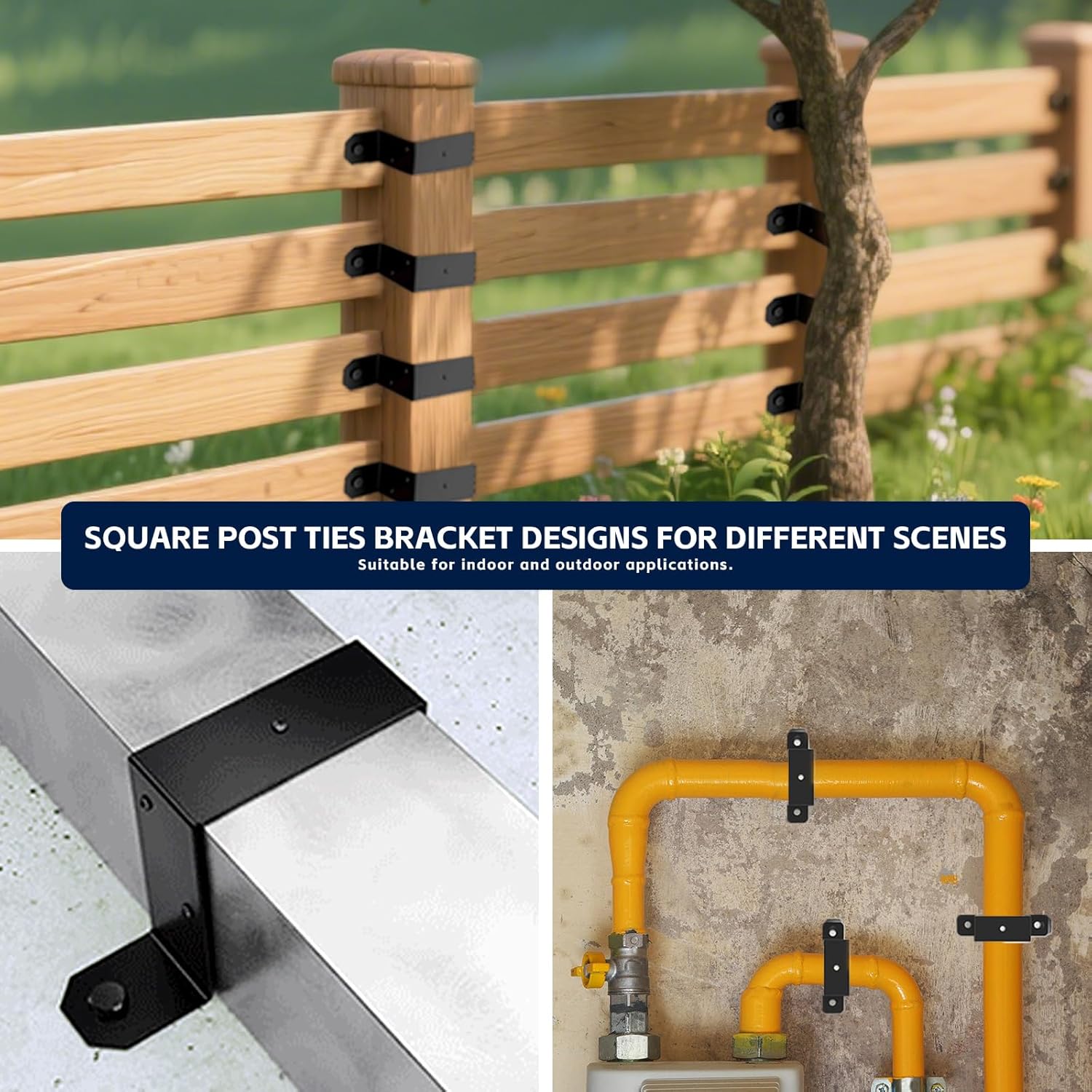 Usage Scenarios: Deck Construction: Use these post ties to firmly attach 4x4 posts to the deck rim joist, providing stable support for your deck railing or other structures. Fence Installation: They are perfect for connecting fence posts to the horizontal rails, ensuring a sturdy and long - lasting fence. Gazebo Building: Secure the 4x4 posts of your gazebo with these post ties, making your outdoor relaxation area more stable and safe. Package Contents: The package includes 4 pcs 4" x 4" strap post ties. Two kinds of screws for installation.