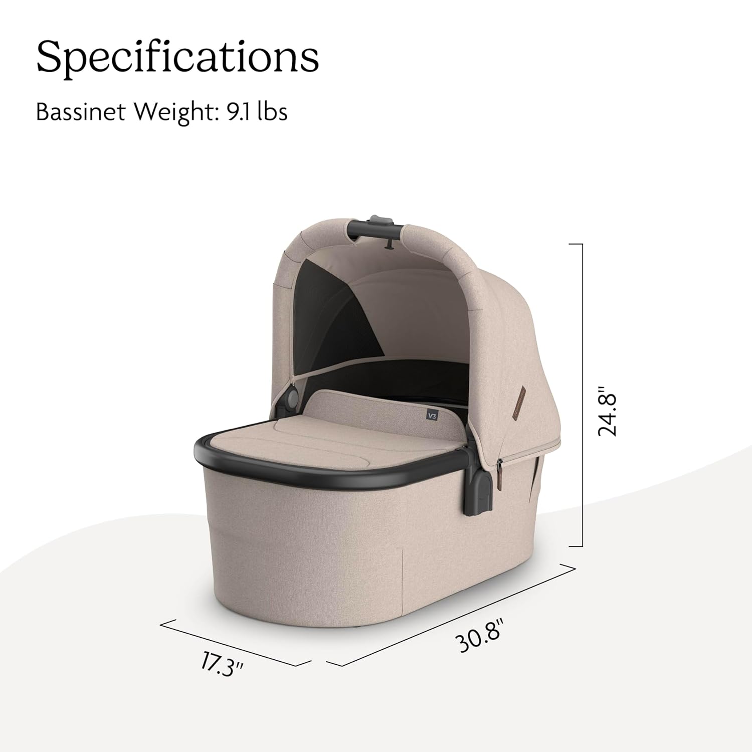 Transform your Vista, Cruz, or Ridge into a safe and stylish pram ideal for your newborn. Whether for naps on the go or overnight sleeping, our Bassinet allows your baby to lie completely flat. The Bassinet V3 has enhanced features including greater ventilation, easy access to baby, and a breathable mattress for safe sleep. - Extendable, UPF 50+ sunshade and mesh panels for air flow - Carry handle with an effortless one-hand stroller release for easy on-and-off attachment - Zip-out, water-repellent inner liner and boot cover are easy to remove and clean - Direct attachment to stroller with indicators for extra security - Included Bug Shield to protect from outdoor elements - Fits directly onto Bassinet Stand Accessory - GREENGUARD Gold certified to support healthier air quality & low chemical emissions + What is Included - Bassinet - Bassinet Bug Shield - Mattress - Mattress Cover.