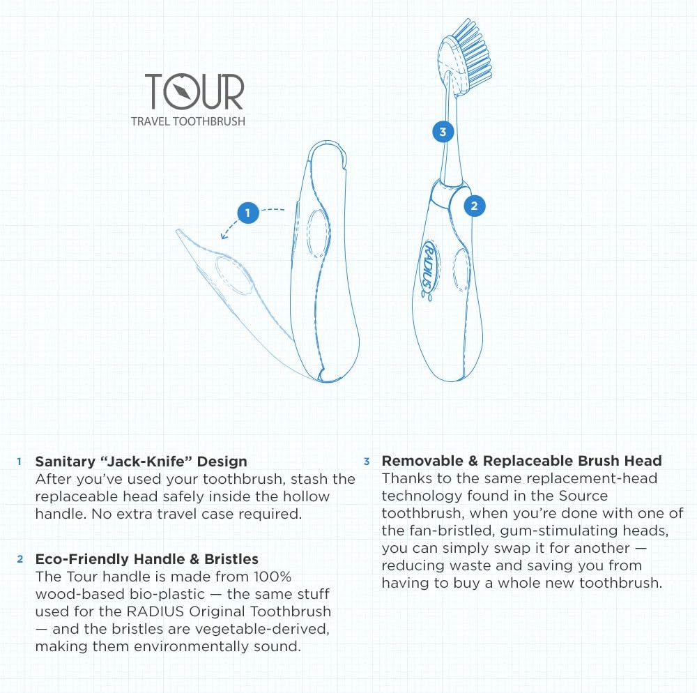 RADIUS Tour Travel Toothbrush, Assorted Color - 1 Count (Pack of 5)