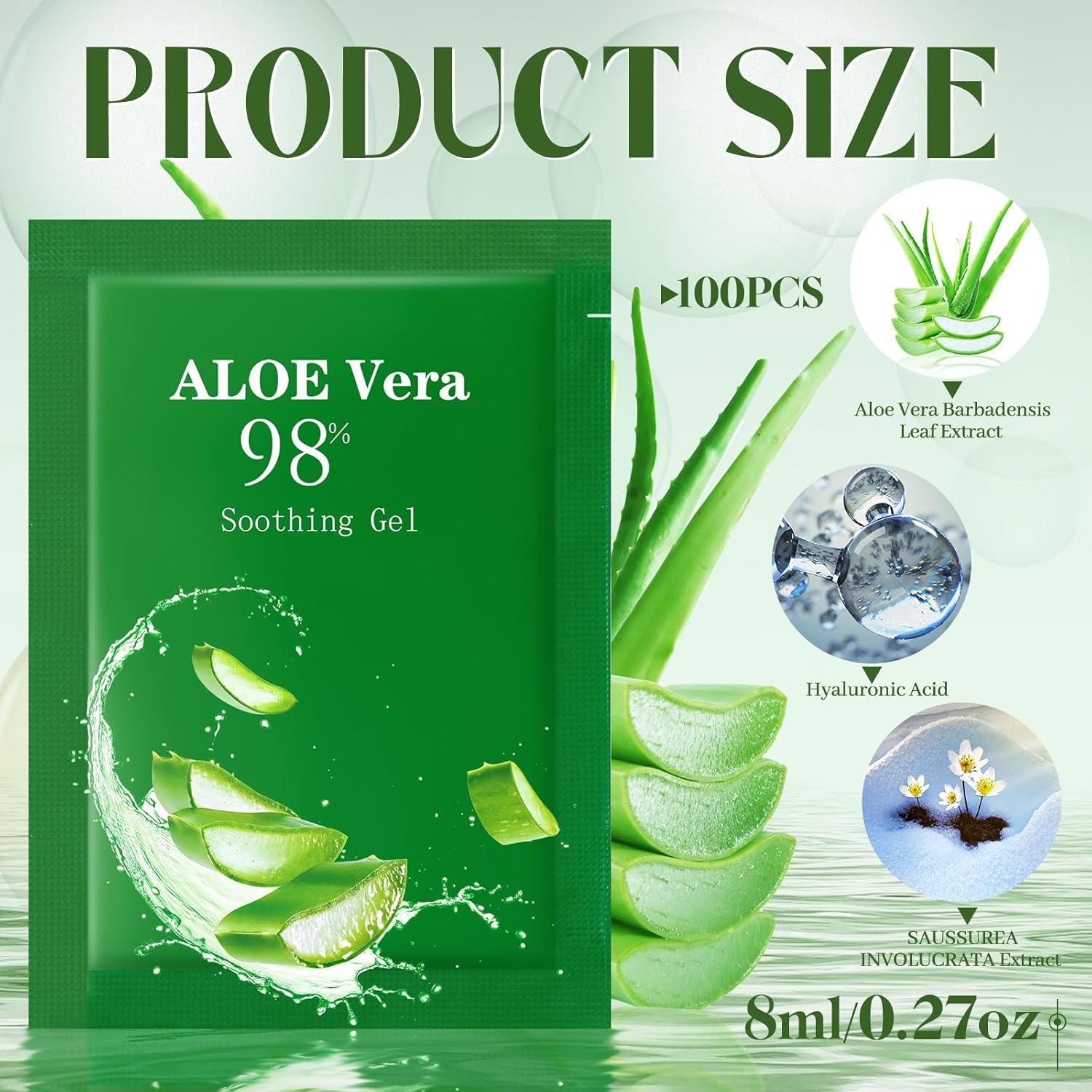 100 Pcs Travel Size Aloe Vera Gel 98% Organic After Sun Moisturizer for Face, Body, Soothing Hydrating Lotion Bulk for Travel, Summer Vacation, Sunburn Relief, Skin Care Gifts