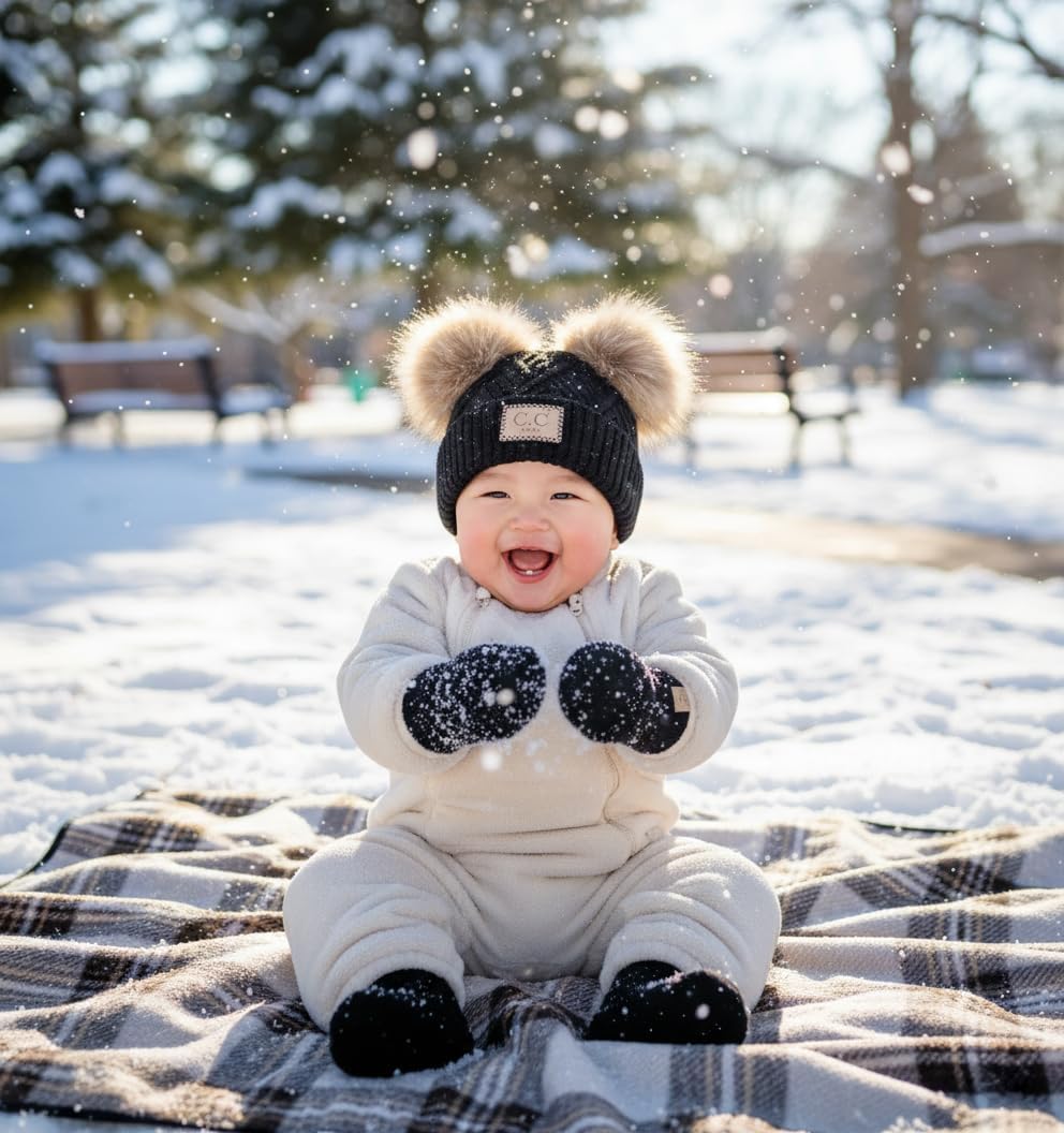 Wrap your little one in cozy comfort with the Funky Junque Infant Double Faux Fur Pom Pom Beanie & Mittens Set, designed for newborns and babies 0–9 months. This irresistibly cute winter bundle features a soft, stretchy beanie topped with two fluffy faux fur pom poms and a pair of beautifully knit mittens lined with plush sherpa for extra warmth. The materials are gentle on delicate skin, offering breathable insulation that keeps your baby comfortable during stroller walks, park outings, or chilly mornings. Both pieces are lightweight, durable, and easy to transport, making them an ideal grab-and-go option for busy parents. The double pom pom beanie slips on easily and stays snug without feeling tight, accommodating a variety of head shapes while keeping your baby’s ears protected from the cold. The mittens feature a cozy lining and ribbed cuffs that help them stay in place, preventing cold hands and tiny fingers from exposure to the winter chill. Together, this matching set creates an irresistibly cute look that turns everyday moments into treasured memories. Perfect for winter photos, baby announcements, holiday cards, and milestone moments, this infant beanie and mitten set adds charm to every outfit. Pair it with snowsuits, fleece sleepers, puffer jackets, or cozy knitwear for a complete cold-weather look. This bundle also makes a thoughtful baby shower gift, newborn welcome present, or holiday stocking stuffer that parents will truly appreciate. Designed for comfort, crafted for cuteness, and made for winter adventures—the Funky Junque double faux fur pom pom set keeps your baby warm, stylish, and ready for every chilly day.