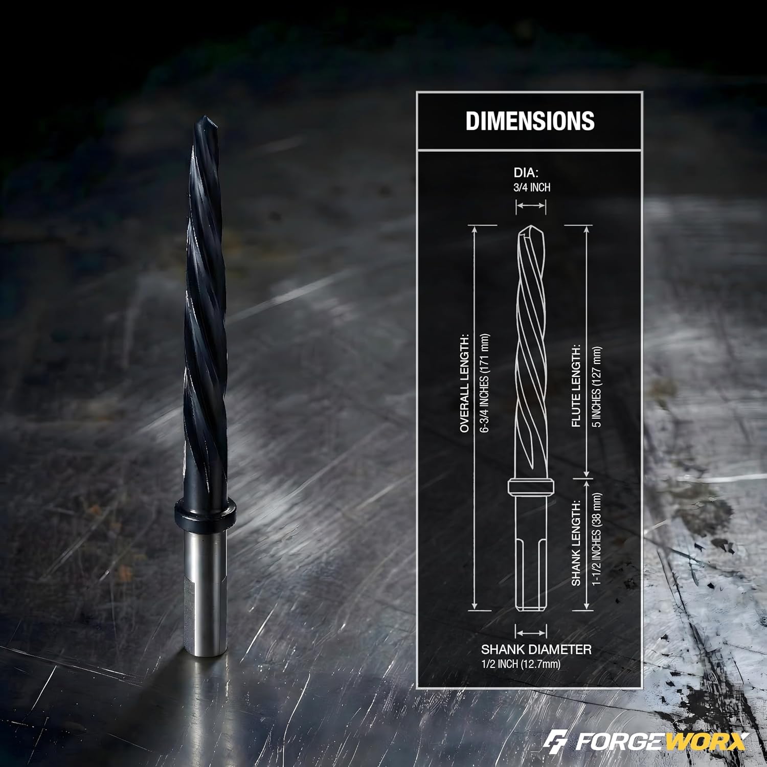 Upgrade your metalworking and construction toolkit with this Heavy-Duty Bridge Reamer, engineered for professionals and DIY enthusiasts alike. Precisely designed for hole enlargement and alignment, this reamer is ideal for cleaning up pre-drilled holes and prepping them for bolt and rivet installation. Constructed from robust M2 High-Speed Steel and featuring 5 spiral flutes for efficient chip removal, this tool delivers smooth, consistent results across multiple materials, including steel, alloy, aluminum, wood, and plastic. The tapered tip effortlessly enters overlapping or irregular holes, while the non-slip shank locks securely into your drill for enhanced stability and control. Whether you’re working in bridge construction, fabrication, or general maintenance, this reamer helps you achieve professional-grade results faster and with less effort.Specifications Size:3/4” x 6-7/8” Material: M2 High-Speed Steel TiAlN Coating Flutes: 5 Spiral Shank:Non-Slip / 3 Flat Applications: Steel, Metal, Alloy, Wood, Plastic Tool Type: Taper Chucking Reamer Use: Hole alignment, enlargement, deburring Warranty:Forgeworx is confident in the construction of all of our products. Our bridge reaming drill bits are designed, engineered and manufactured to highest possible standards; optimizing durability and service life. If you are unsatisfied with your purchase in any please feel free to return the item to Forgeworx for a full replacement. Warranty excludes dull and misused bits.