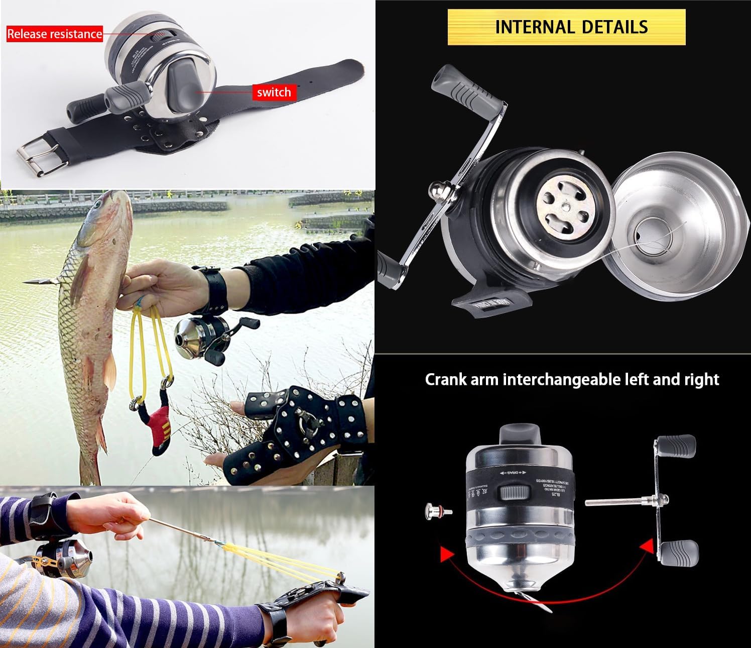 | Included Components | The product includes: 1 stainless steel goat slingshot, 1 stainless steel fishing reel, 1 hand guard set, 5 fish darts, 1 box of strong fishing line, 5 fishing rubber bands, a set of tools |