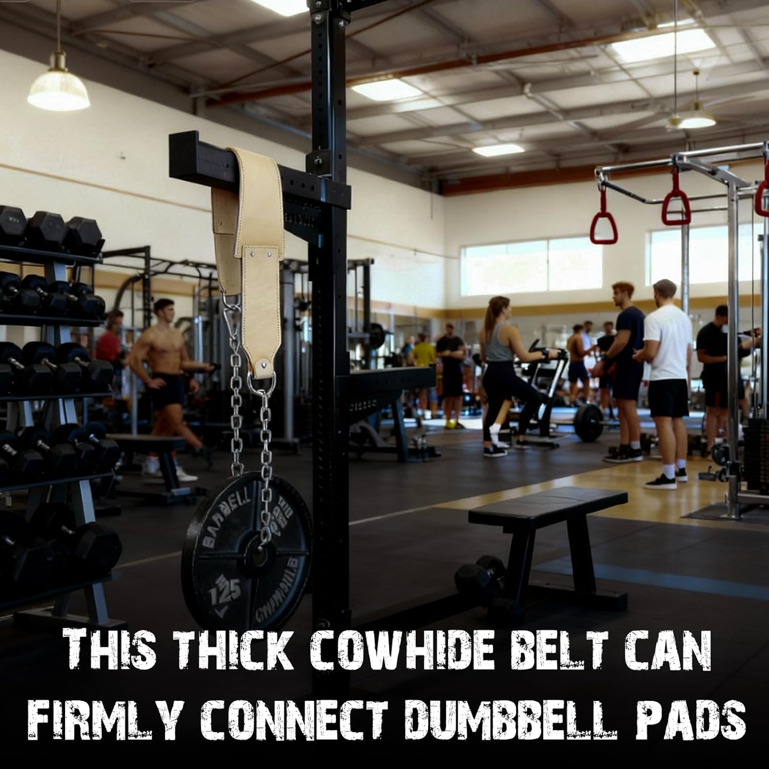 Features: Anti-slip and Wear-Resistant: The cowhide surface is treated with a scratch-resistant and wear-resistant finish, making it less susceptible to scratches and peeling from daily friction with barbells and equipment. The inner suede lining is not only skin-friendly but also enhances friction with clothing, preventing the belt from sliding during exercise and maintaining a secure fit even under heavy sweating Practicality and Safety: The steel chain has been load-tested and can stably support over 300 pounds. It features a reinforced carabiner (which automatically locks when closed) to prevent the chain from detaching during exercise, creating a safety hazard. Whether your waistline changes during muscle-building or you're using it between different trainees, the belt can be quickly adjusted to a snug fit Specifications: Material: Leather Color: white Size: 34 inches Package includes: 1 X 34 Inches strap 1 X 40 Inches chain Notes: Manual measurement, please allow slight errors on size. The color may exist a slight difference due to different screen displays.
