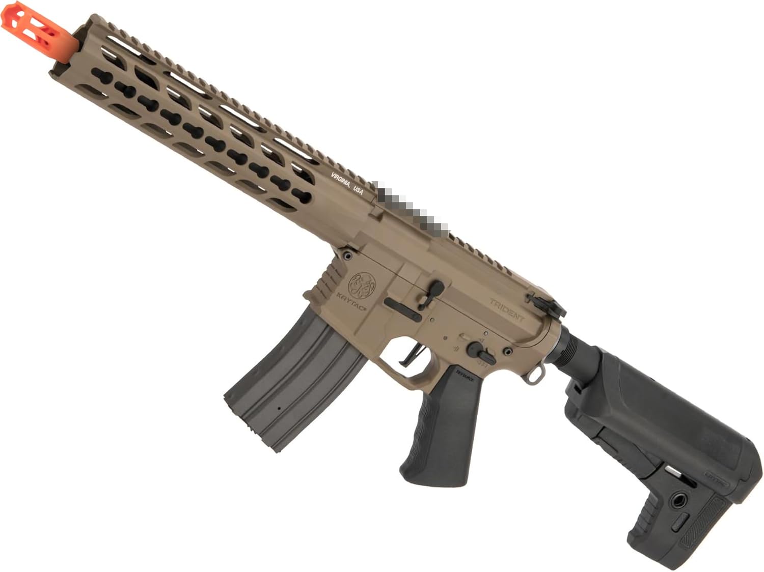 The Trident MK2 CRB features a reinforced 8mm ball bearing gearbox with integrated MOSFET to regulate electronic signals and to protect the trig contacts. The corners of the gearbox that surround the cylinder feature a smooth radius, as opposed to a 90 angle, to prevent fracture. Also, the gearbox shell features a small window on the left side where lubrication can be applied directly to the gears or piston, this window is also convenient for inspecting the angle of engagement with the gearbox fully assembled. Additional gearbox features include a modular s-guide system that will allow it to be changed without completely disassembling the gearbox. The KRYTAC piston is made of a durable, lightweight polymer and features 4 metal teeth, with the 2nd to last tooth absent. The c-head is padded with an enlarged rubber bumper to optimize the angle of engagement and to absorb energy from the impact of the p-system. The material for the gears have been especially formulated to be very strong, Rockwell test figures on the KRYTAC gears are much higher than industry norms. Turning all of the drive train components is the KRYTAC high torque motor, capable of 20,000 revolutions per minute unloaded. The Trident MK2 CRB is one of the best multipurpose AEGs that performs at a high level in a multitude of different scenarios. Length: 675mm - 787mm (26.5" - 31") (Adjustable) Weight: 2500g (5.5lbs) inner-b: 280mm (6.05mm Diameter) Mag Capacity: 300rd Hi-Cap M4-Style mag. Works with Tokyo Marui, Matrix, G&P and other compatible M4-Style Series AEG Airsoft Mags Thread Direction: 14mm Negative Gearbox: Ver 2 Metal, Fully Upgradeable Motor: Long Type Fire Modes: Semi/Full-Auto, Safety Package Includes: Airsoft Gun, Mag, Front and Rear Sights, Manual Battery: 9.6v 1600mAh Butterfly Type (Battery not included. Wired to Deans T-Plug) (NOTE: Battery output rating should not exceed 30 amps) Hopup: Yes, Adjustable
