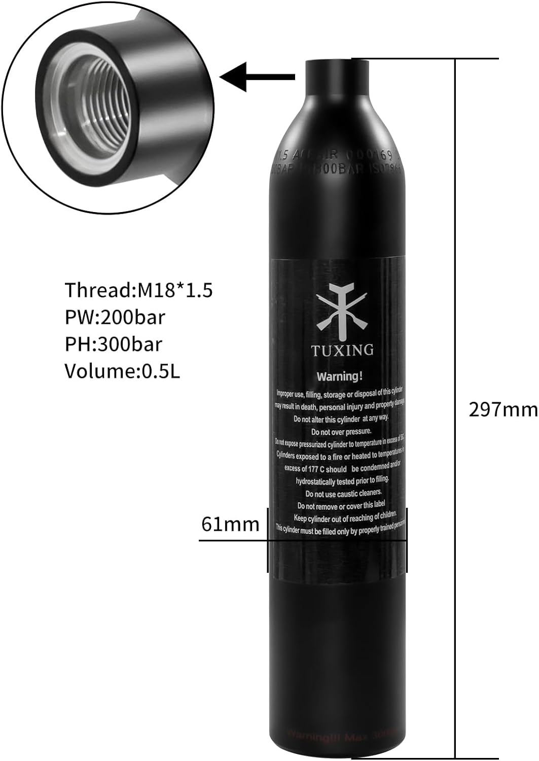 | Part Number | 0.5L M18*1.5 Aluminum Paintball Air Tank |