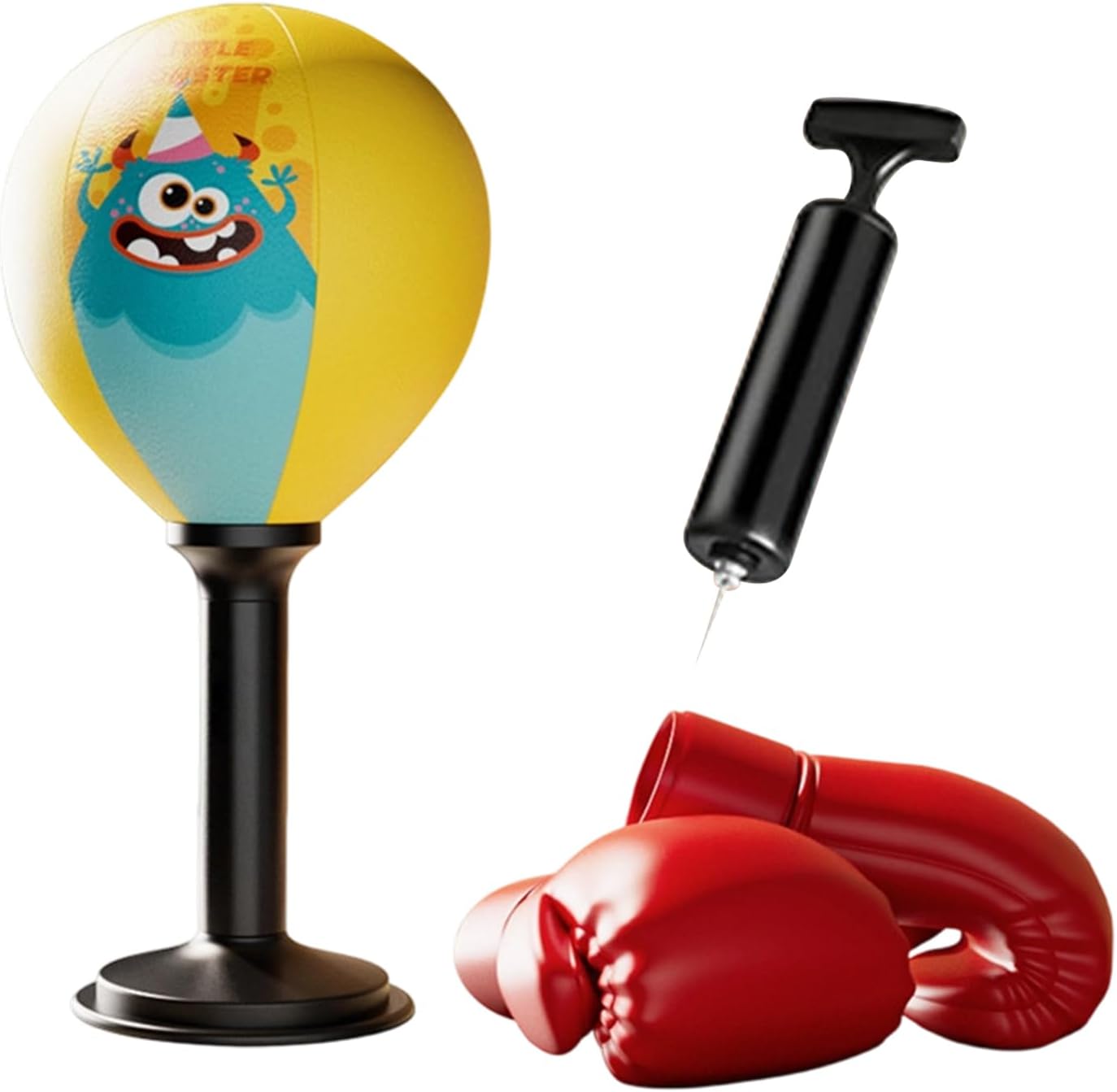 Desktop Punching Bag | Reaction Training Toy with Super Suction Cup,Stress Relief Boxing Bag,for Kids Adults Home Bedroom Living Room Gym Desk TableThe Stress Relief Boxing Bag is designed to provide an effective stress relief solution while enhancing reaction training for users of all ages. This versatile workout tool features a super suction cup that assures stability and ease of use in various settings including home environments such as the bedroom or living room, as well as gyms. Its compact design allows it to be placed on a desk or table, making it convenient for both kids and adults seeking a quick outlet for stress. Whether used for improving focus through reaction training or simply unwinding after a long day, this boxing bag serves as a reliable companion.. Ideal for those looking to incorporate physical activity into their daily routine, the Stress Relief Boxing Bag seamlessly blends practicality with fitness needs in any space.Specifications:Material: PU leather + ABS + Stainless Steel + PU SpongeProduct size: about 17.7x40cm/6.97x15.75 inchesProduct weight: about 900gProduct List:1 * Ball1 * Connecting Rod1 * Pump 1 * Base2 * GlovesNotes: Due to different lighting and screen settings, the product color may be slightly different from the picture.Due to the difference in manual measurement, please allow a 1-3cm difference in size.