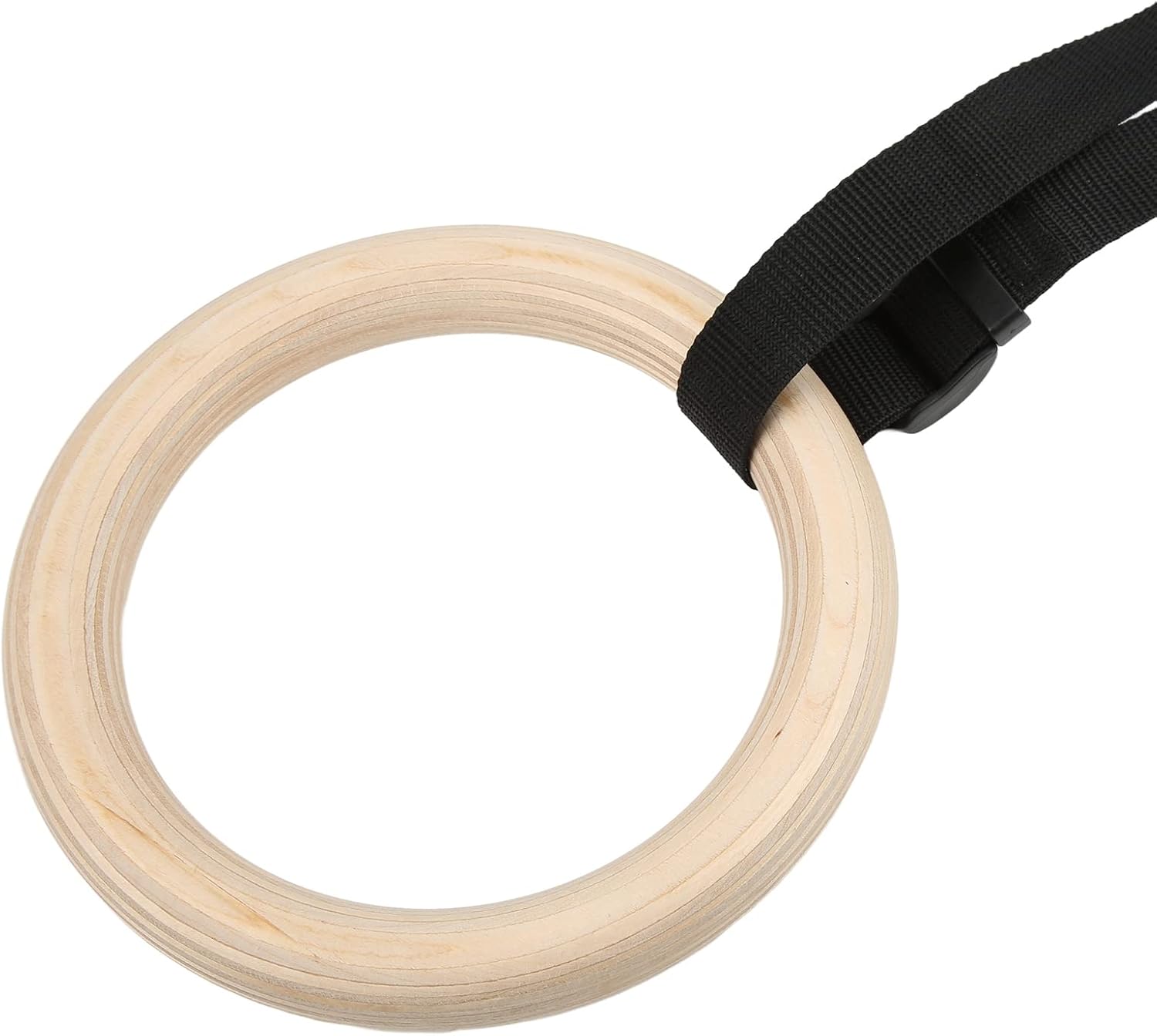 [Adjustable Buckle Straps] Customize the length up to 70cm for versatile high-level workouts, and enjoy the stability provided by wear-resistant rubber pads.[Wide Range of Application] for students, office workers, and the elderly, these rings are ideal for home gyms, lifting exercises, and more.[Wood Material] The birch wood material provides a comfortable and wider grip for a firm and odorless experience.[Full Body Workout] From beginners to professionals, these rings offer a complete full-body exercise solution for strength training.[330lbs Load Bearing Capacity] These rings can support up to 330lbs, meeting all your training needs.Spec:Item Type: Gymnastics RingsMaterial: WoodProduct Color: As Pictures Shown Maximum Adjustment Length: Approx. 70cm / 27.6inProduct Weight: Approx. 488g / 17.2ozLoad Bearing Weight: 150KG / 330LBPackage List:1 x Pair of Gymnastics Rings